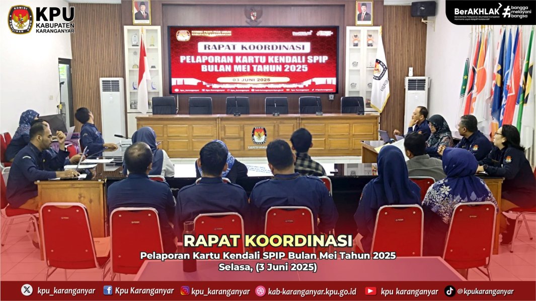 KPU Kabupaten Karanganyar Laksanakan Kegiatan Rapat Koordinasi Pelaporan Kartu Kendali SPIP Bulan Mei Tahun 2025, Selasa, (3 Juni 2025)