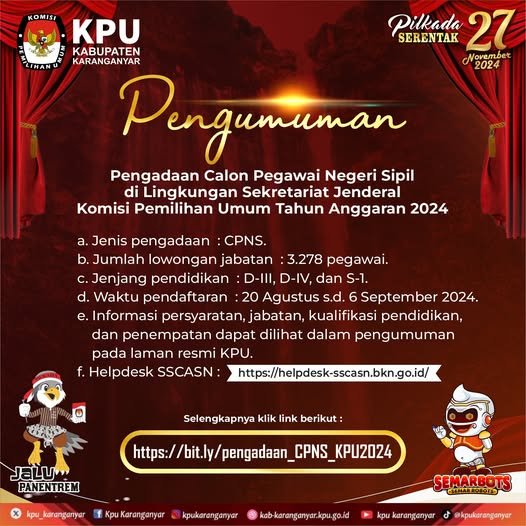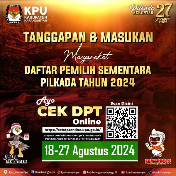 Untuk info lebih lanjut bisa hubungi helpdesk KPU Kab. Karanganyar