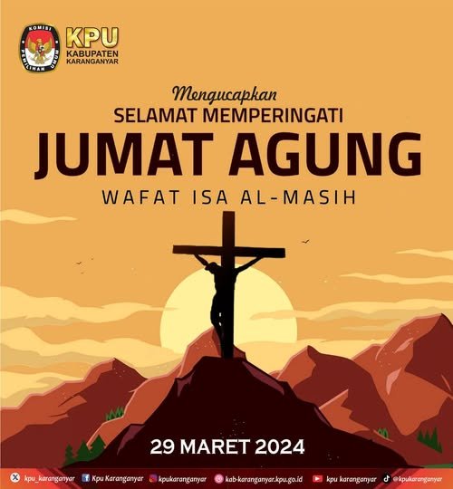 Selamat memperingati Hari Jumat Agung (Wafatnya Isa Al-Masih) 29 Maret 2024. Jumat, 29 Maret 2024 10:08 4 KPU Kabupaten Karanganyar mengucapkan #KPUMelayani #PemiluSerentak2024 Baca Selengkapnya
