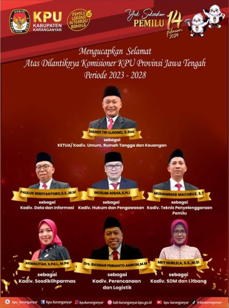 KPU Kabupaten Karanganyar mengucapkan Terima Kasih kepada Masykur, S.Sos., MM. atas dedikasi dan pengabdian selama menjabat sebagai Sekretaris di KPU Kabupaten Karanganyar dan juga mengucapkan Selamat Melaksanakan Tugas sebagai Sekretaris di KPU Kabupaten Sragen.