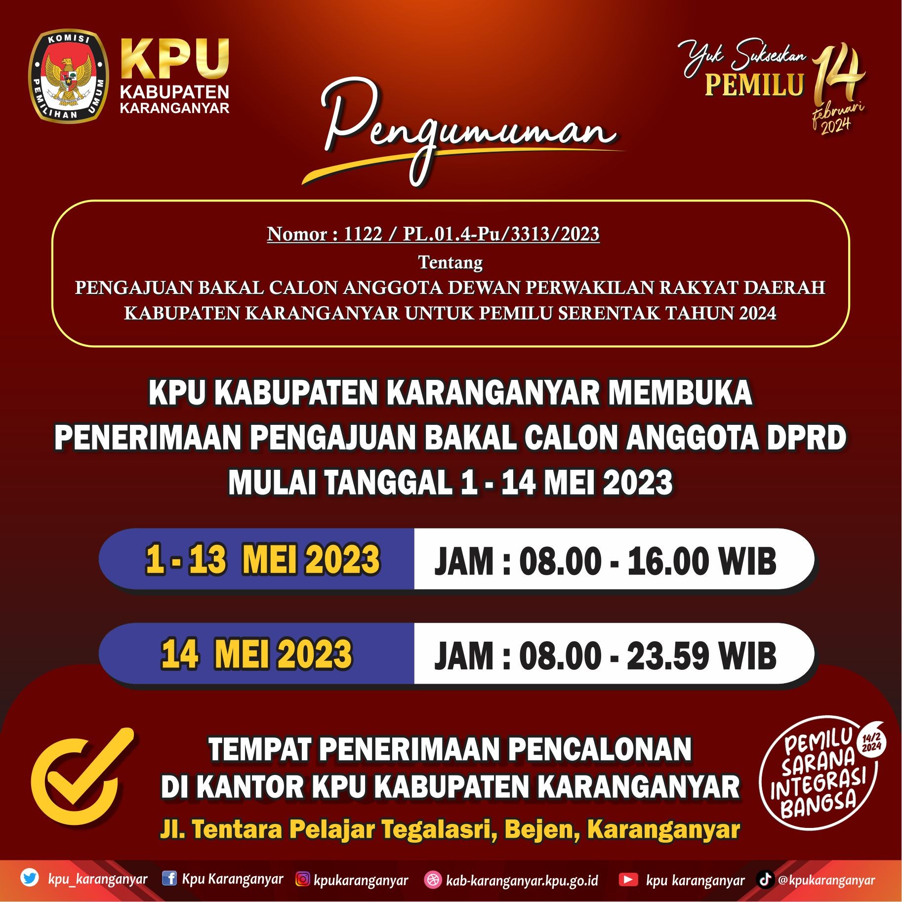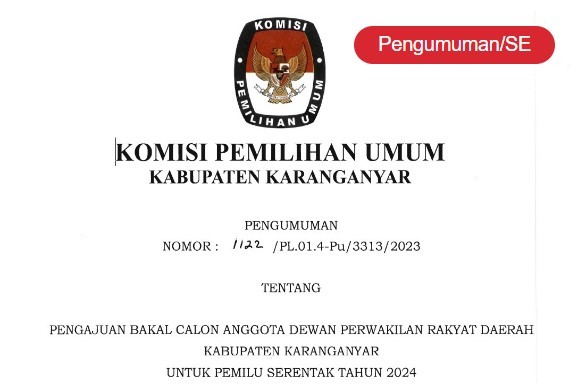 Pengumuman Pengajuan Bakal Calon Anggota DPRD Kab.Karanganyar Pemilu 2024