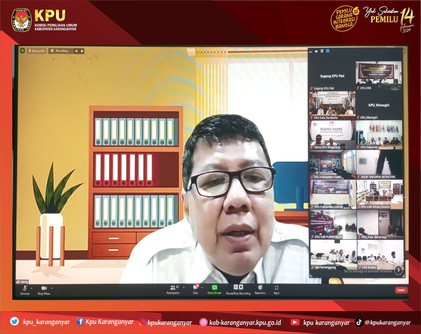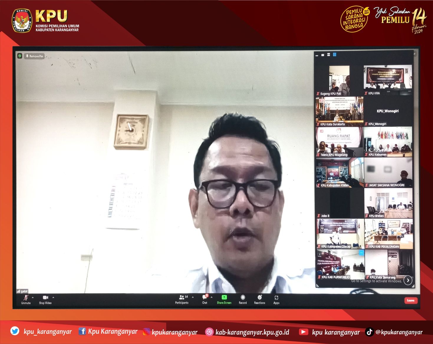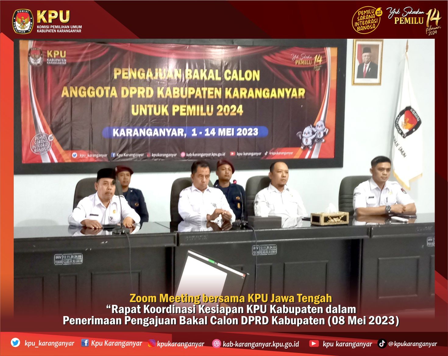 Zoom Meeting bersama KPU Jawa Tengah - Rapat Koordinasi Kesiapan KPU Kabupaten Dalam Penerimaan Pengajuan Bakal Calon DPRD Kabupaten (08 Mei 2023)