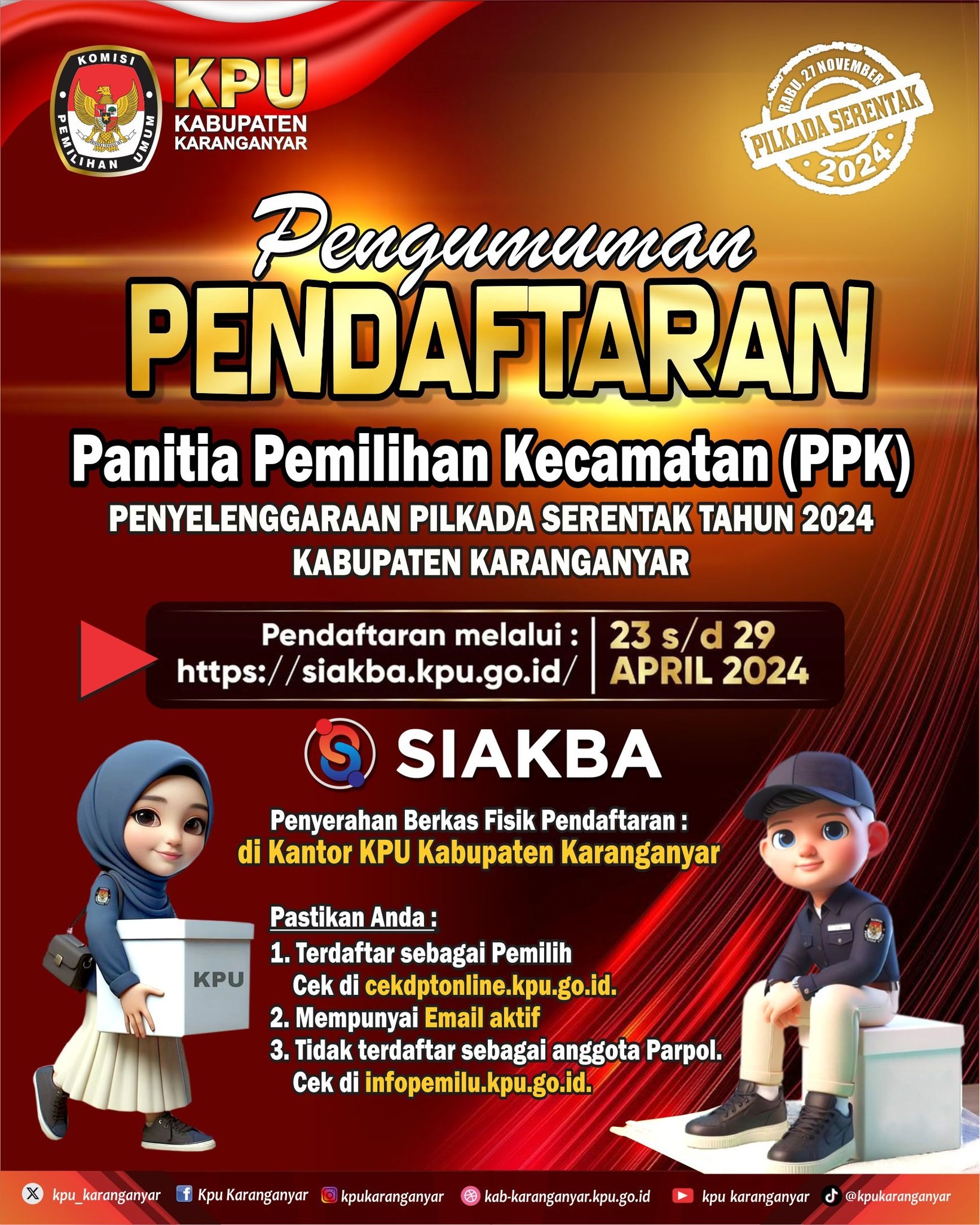 KPU Kabupaten Karanganyar mengucapkan Selamat dan Sukses atas dilantiknya 2.673 Pantarlih Pemilihan Tahun 2024 se-Kabupaten Karanganyar.