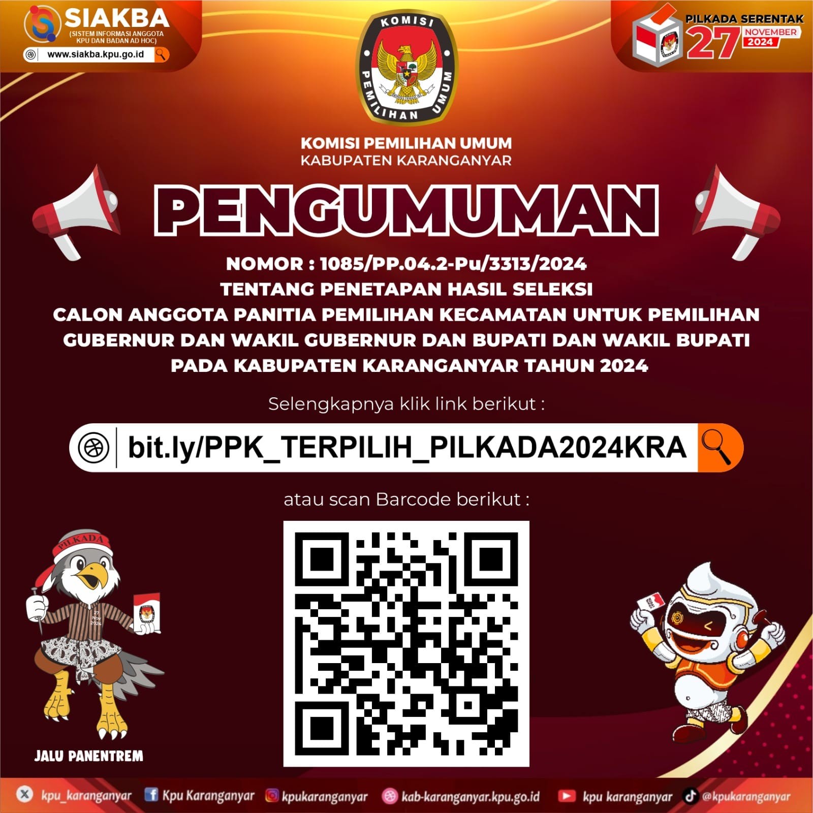 Pengumuman Penetapan Hasil Seleksi Calon Anggota PPK Selengkapnya