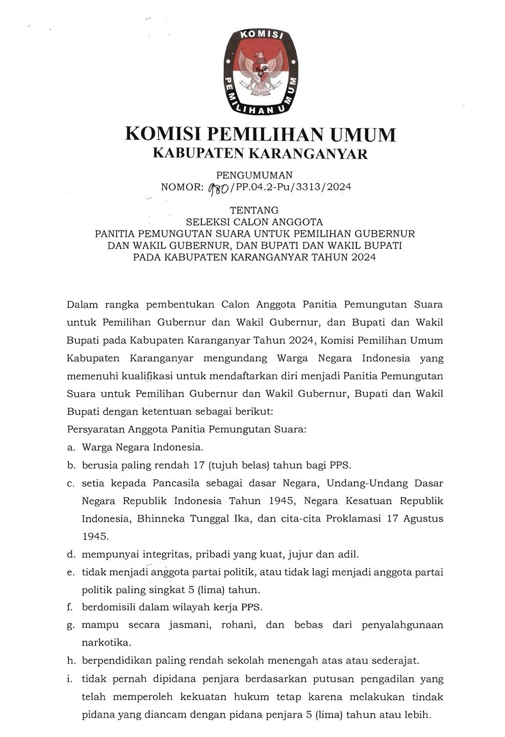 Pengumuman Pembentukan Badan Adhoc PPK Selengkapnya