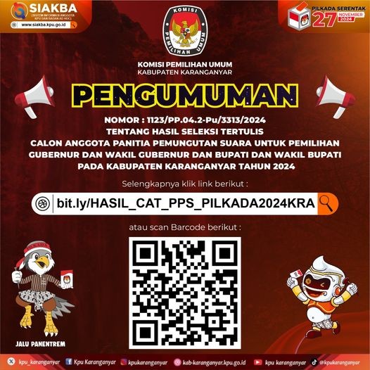 Pengumuman Hasil Seleksi Tertulis (CAT) Calon Anggota PPS untuk Pilkada Serentak 2024 Selengkapnya