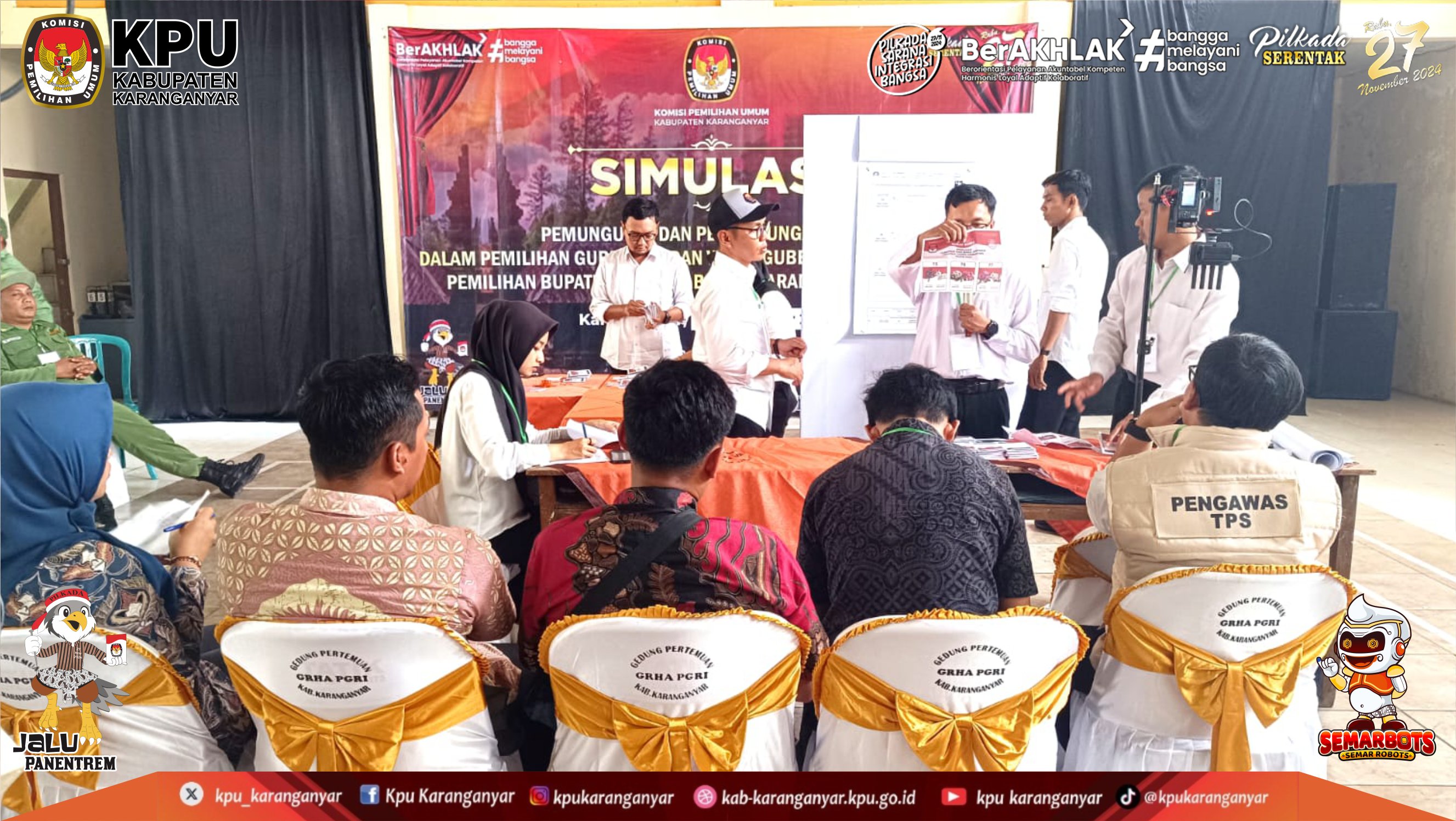 Komisi Pemilihan Umum (KPU) Kabupaten Karanganyar menggelar Simulasi Pemungutan dan Penghitungan Suara untuk Pemilihan Gubernur dan Wakil Gubernur Jawa Tengah serta Pemilihan Bupati dan Wakil Bupati Karanganyar pada Rabu (6/11/2024).