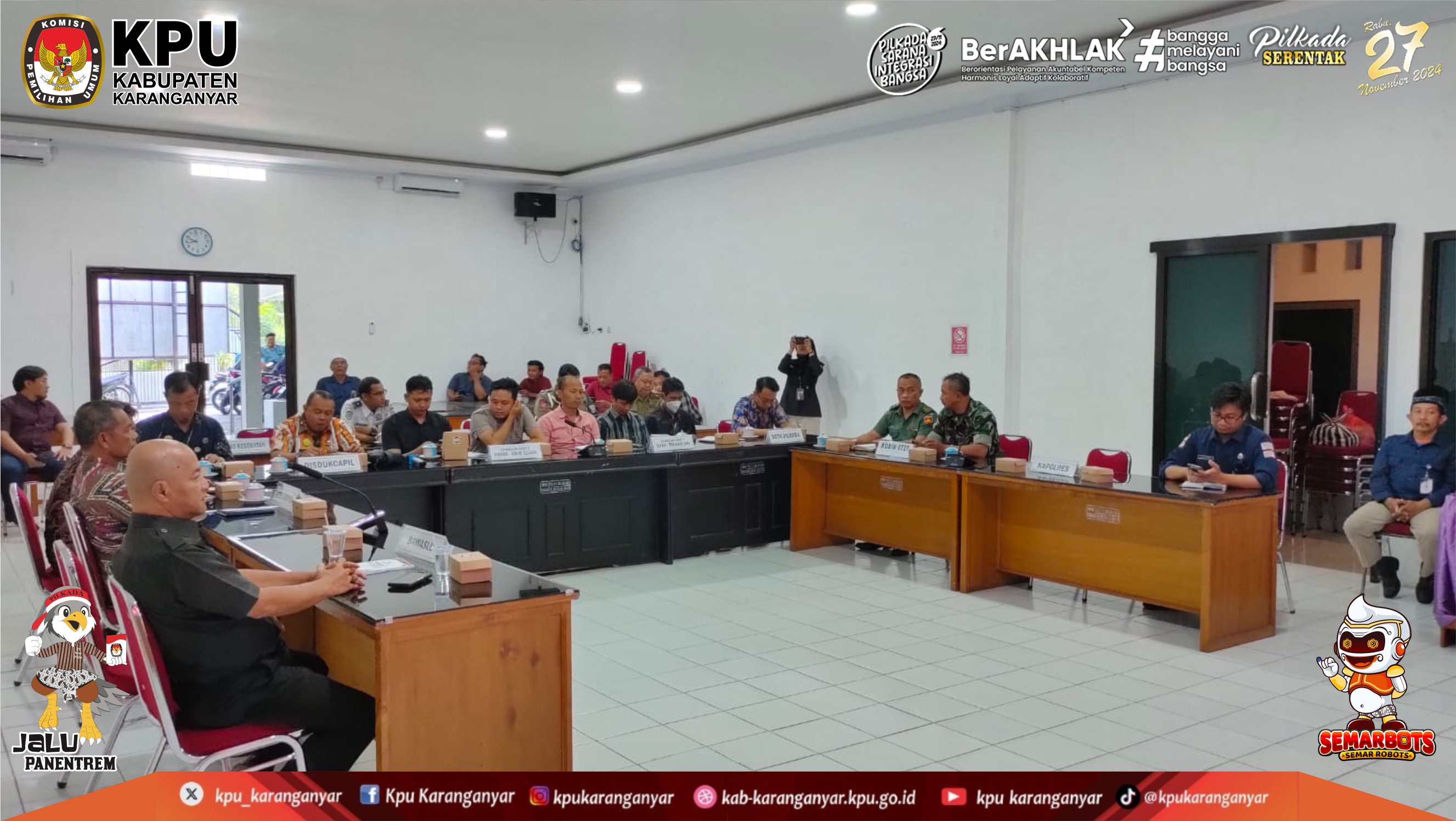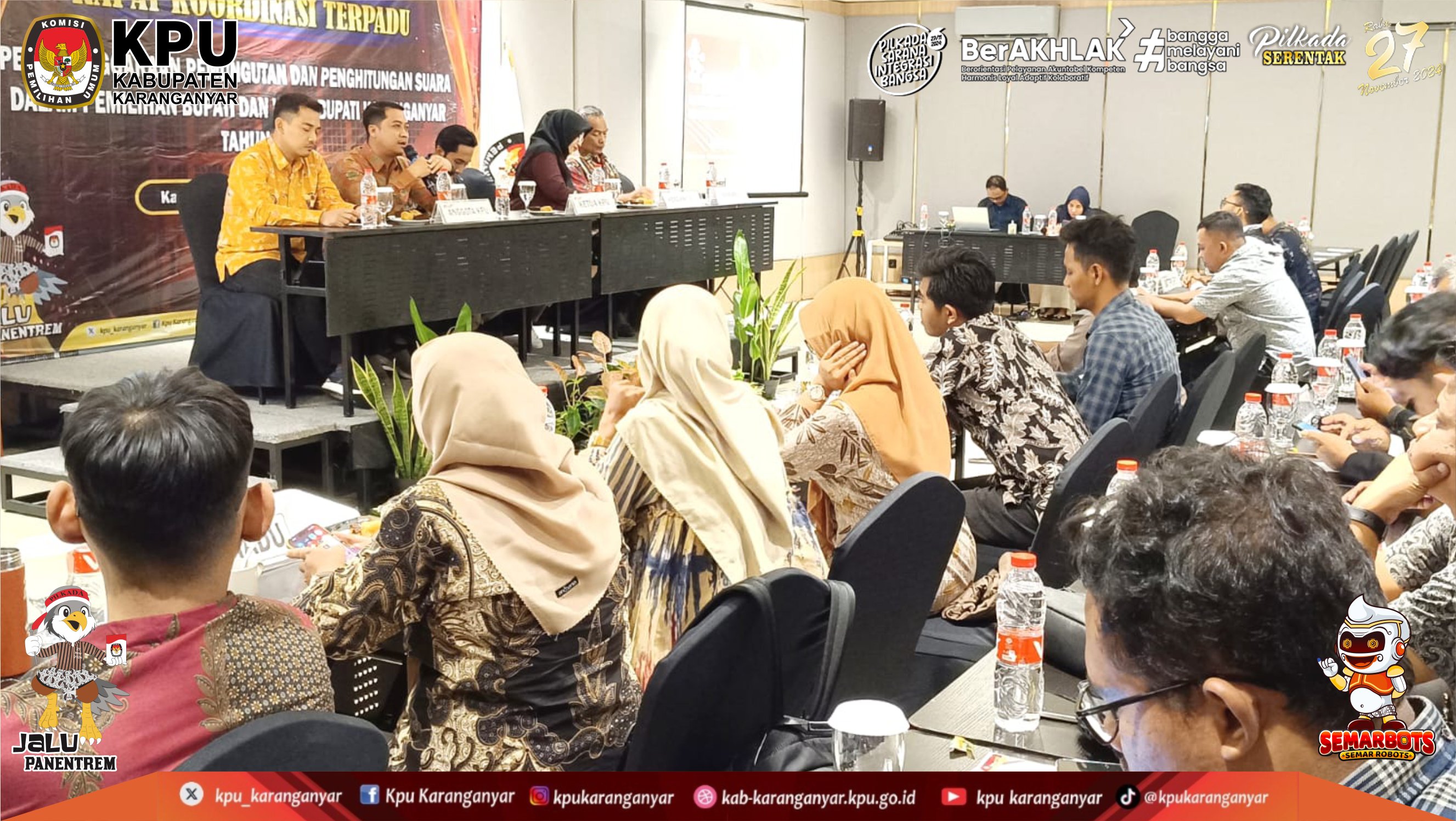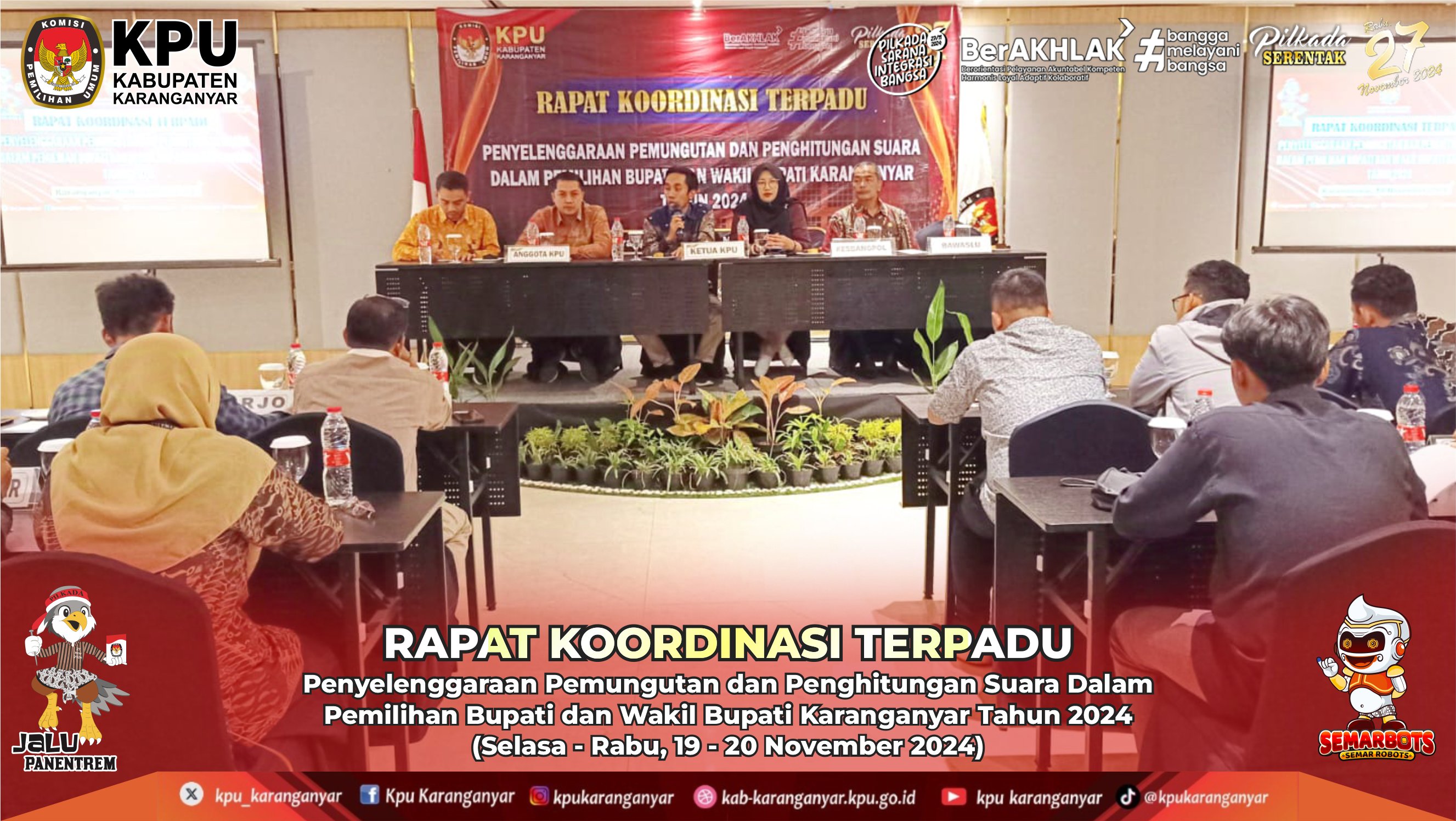 KPU Kabupaten Karanganyar Melaksanakan Rapat Koordinasi Terpadu Penyelenggaraan Pemungutan dan Penghitungan Suara dalam Pemilihan Bupati dan Wakil Bupati Karanganyar Tahun 2024 (Selasa - Rabu, 19 - 20 November 2024)