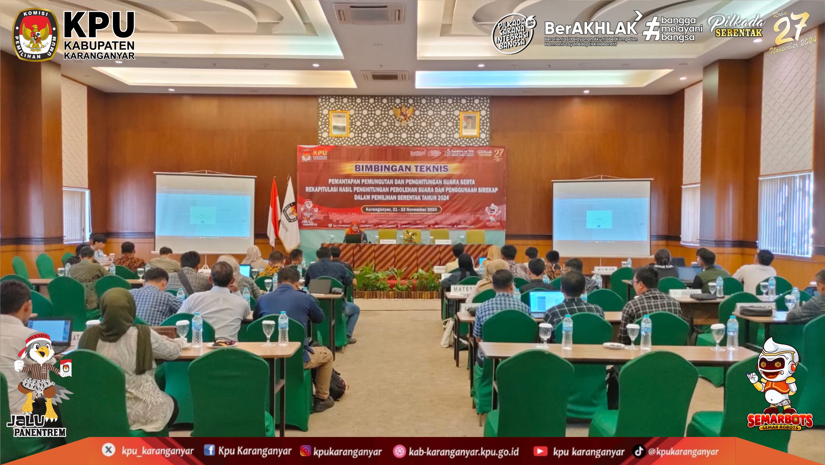 KPU Kabupaten Karanganyar Melaksanakan Bimbingan Teknis Pemantapan Pemungutan dan Penghitungan Suara Serta Rekapitulasi Hasil Penghitungan Perolehan Suara dan Penggunaan Sirekap dalam Pemilihan Serentak Tahun 2024 (Kamis - Jumat, 21 - 22 November 2024)