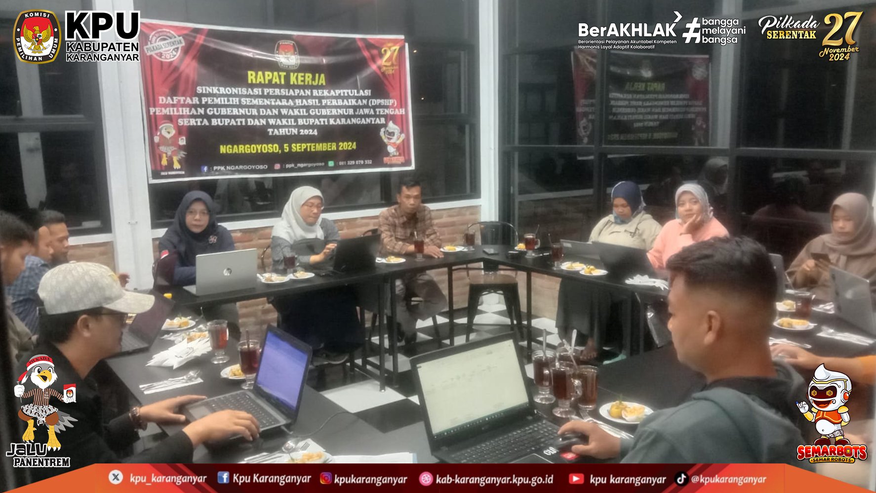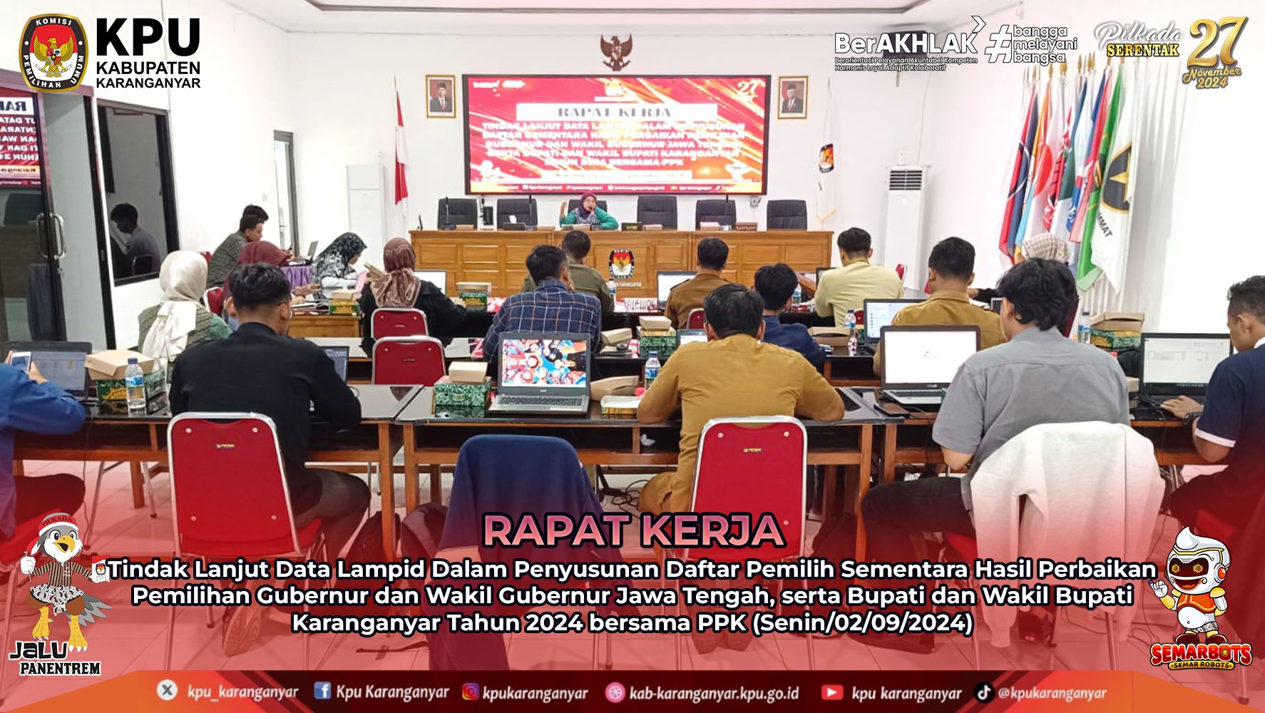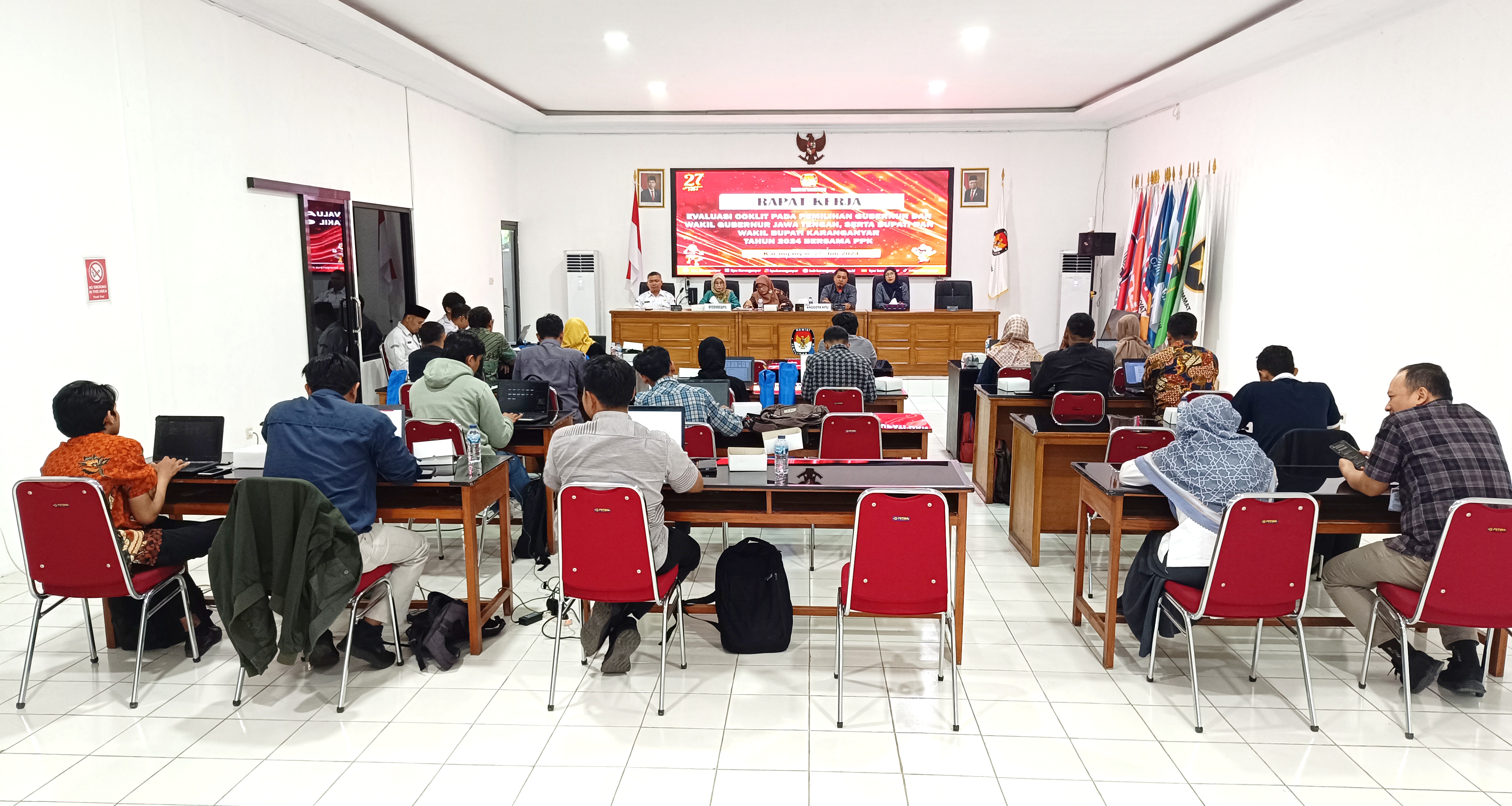 KPU Kabupaten Karanganyar melaksanakan Rapat Kerja Tindak Lanjut Data Lampid Dalam Penyusunan Daftar Pemilih Sementara Hasil Perbaikan Pemilihan Gubernur dan Wakil Gubernur Jawa Tengah, serta Bupati dan Wakil Bupati Karanganyar Tahun 2024 bersama PPK.