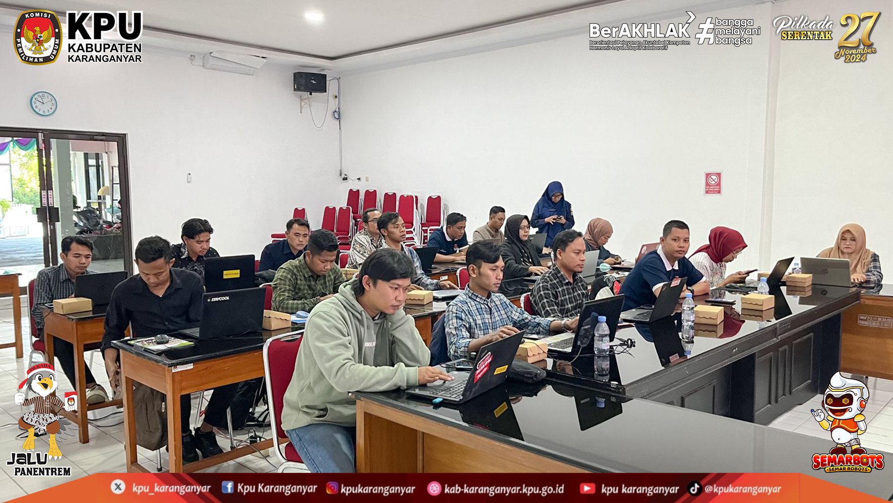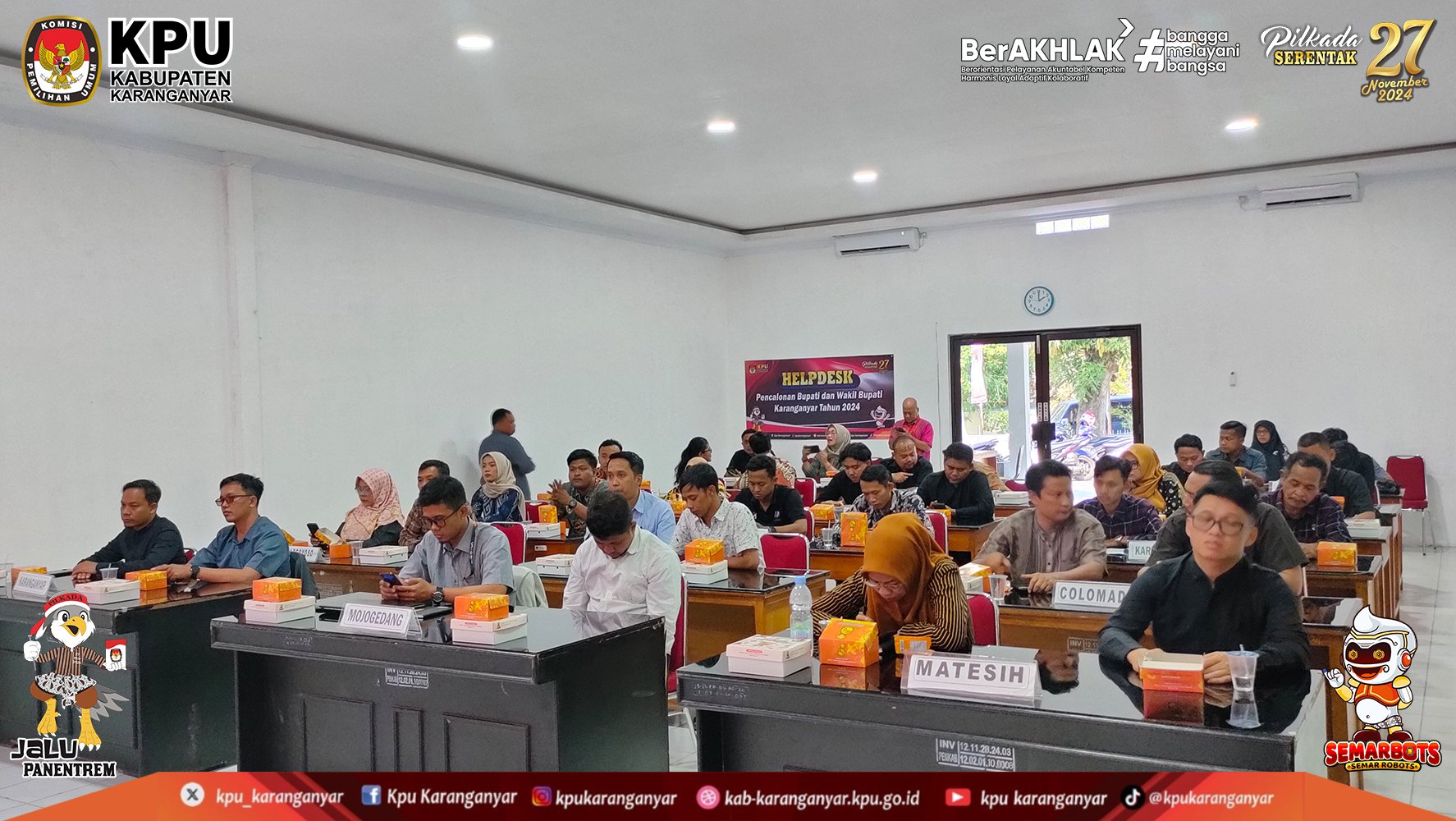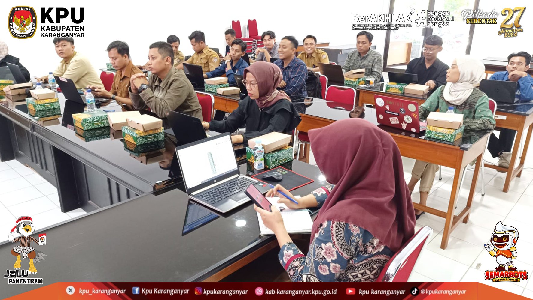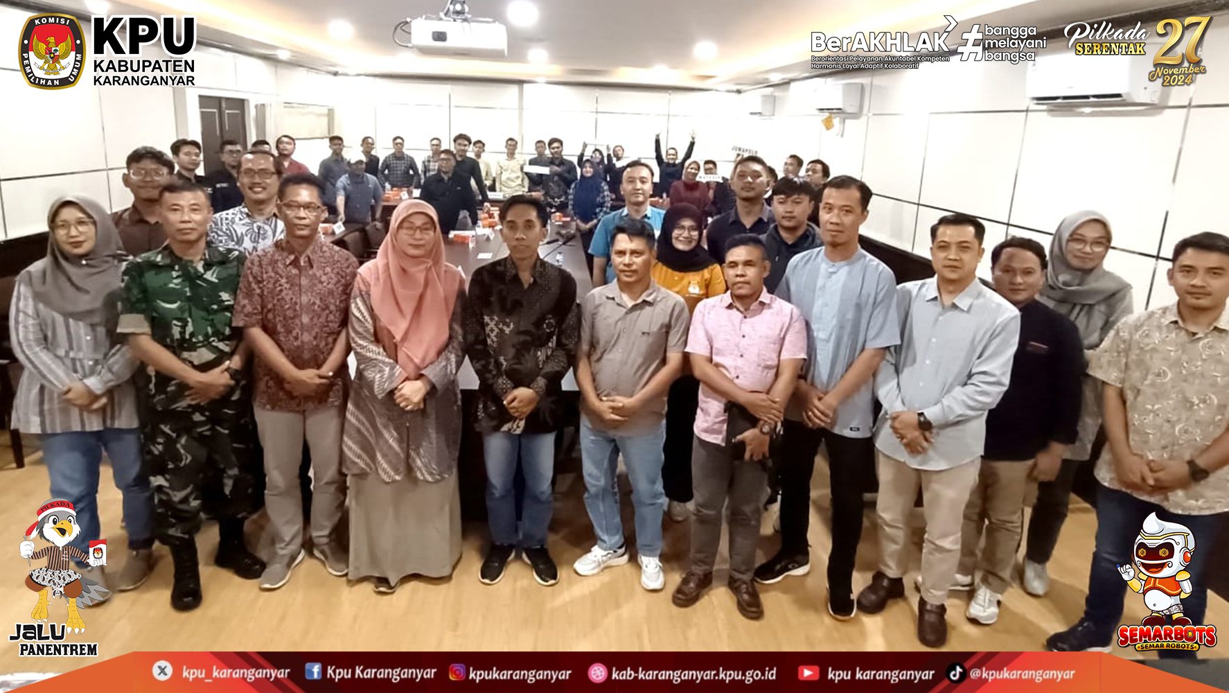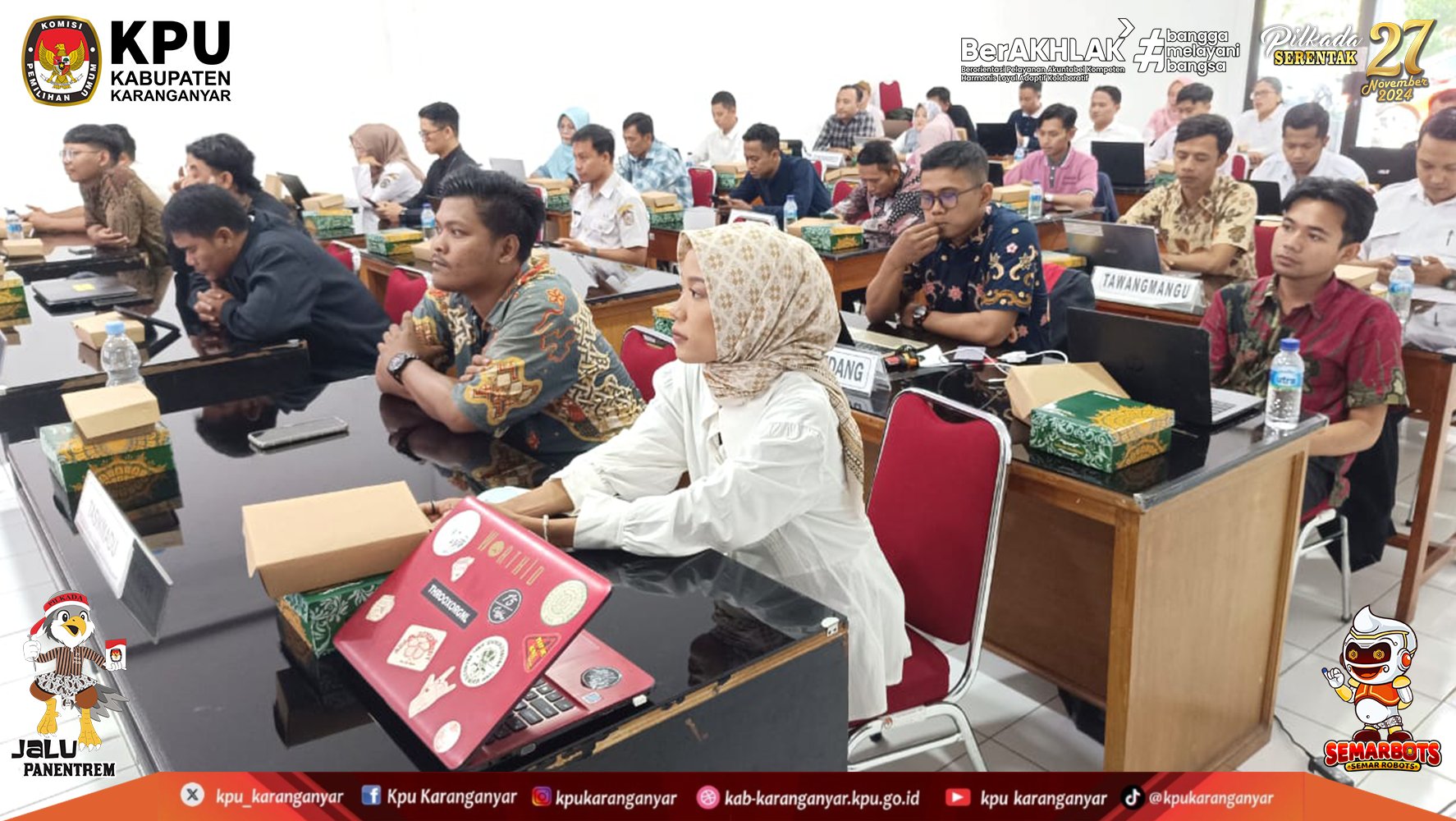 KPU Kabupaten Karanganyar mengucapkan Terima Kasih dan Apresiasi kepada 2.673 Pantarlih se-Kabupaten Karanganyar yang telah menjalankan tugas dalam menyukseskan pelaksanaan tahapan pencocokan dan penelitian (Coklit) data pemilih untuk Pilkada Serentak Tahun 2024.