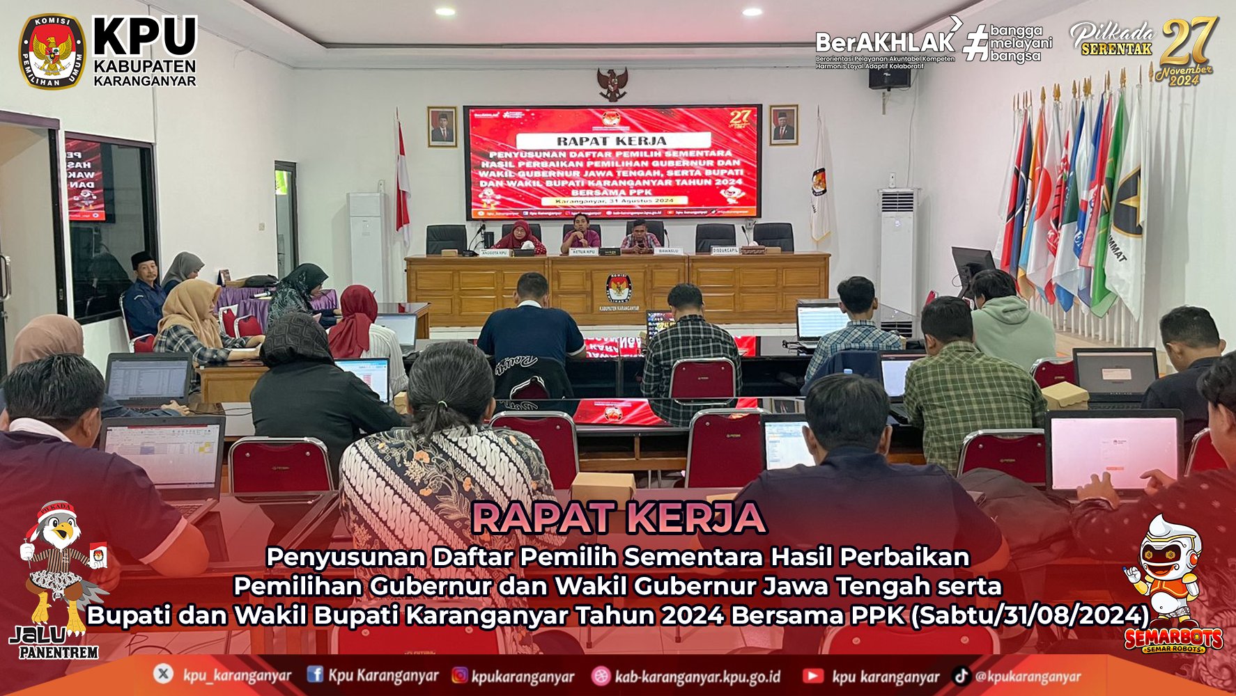 KPU Karanganyar gelar Rapat Kerja Penyusunan Daftar Pemilih Sementara Hasil Perbaikan Pemilihan Gubernur dan Wakil Gubernur Jawa Tengah serta Bupati dan Wakil Bupati Karanganyar Tahun 2024 Bersama PPK di Kantor KPU Kabupaten Karanganyar, (Sabtu, 31/08/2024)