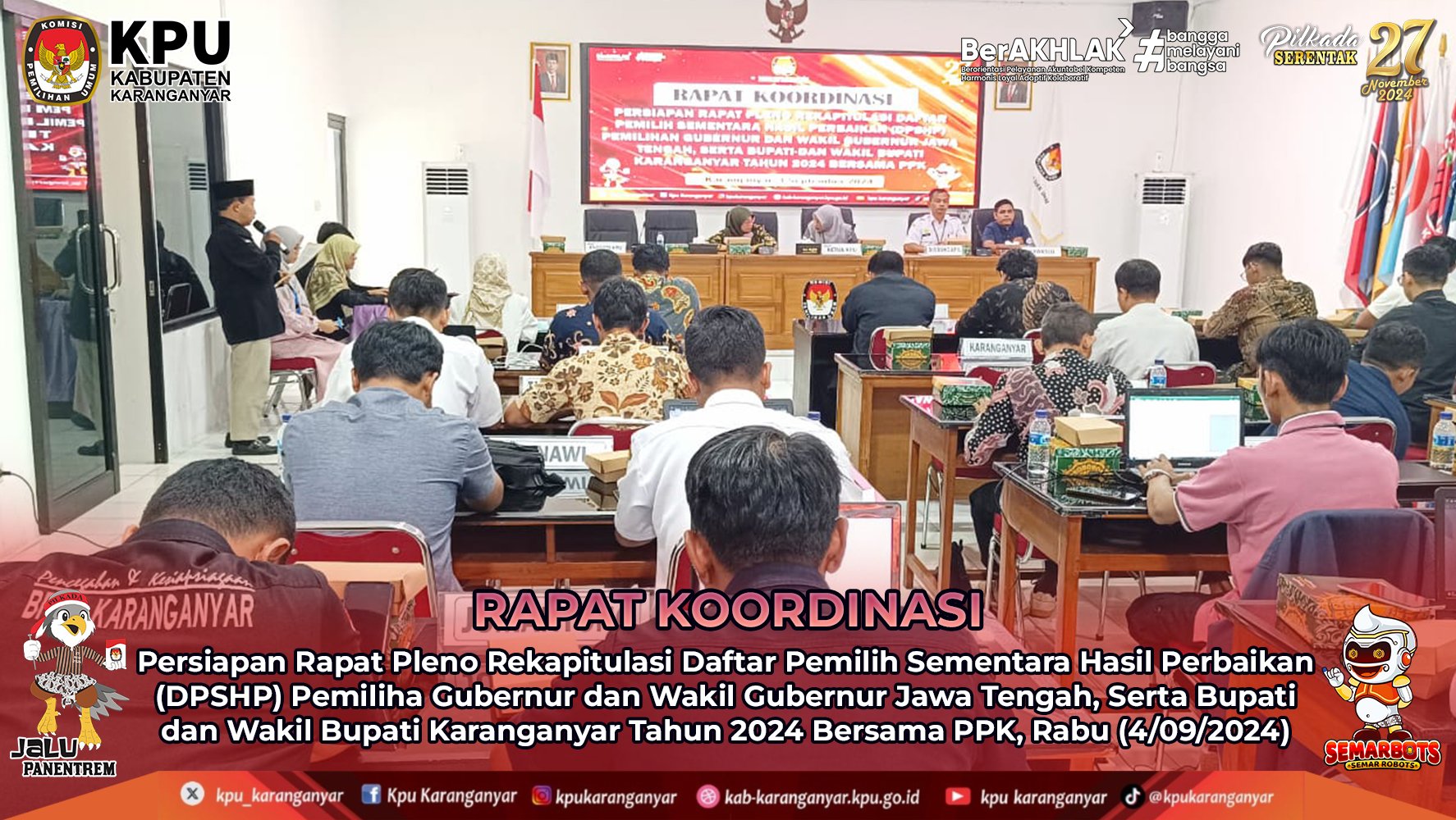 Kpu Karanganyar melaksanakan Rapat Koordinasi Persiapan Rapat Pleno Rekapitulasi Daftar Pemilih Sementara Hasil Perbaikan (DPSHP) Pemiliha Gubernur dan Wakil Gubernur Jawa Tengah, Serta Bupati dan Wakil Bupati Karanganyar Tahun 2024 Bersama PPK, Rabu (4/09/2024)