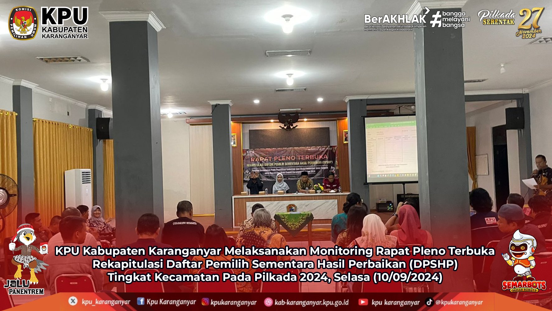 KPU Kabupaten Karanganyar Melaksanakan Monitoring Rapat Pleno Terbuka Rekapitulasi Daftar Pemilih Sementara Hasil Perbaikan (DPSHP) Tingkat Kecamatan Pada Pilkada 2024, Selasa (10/09/2024)