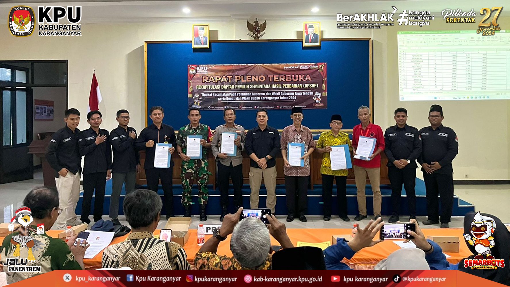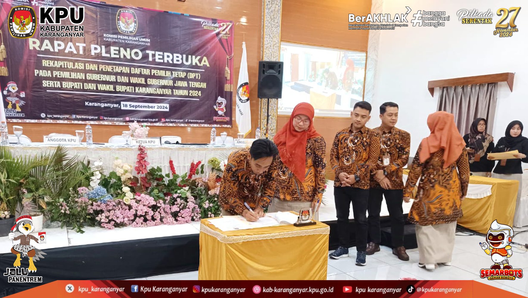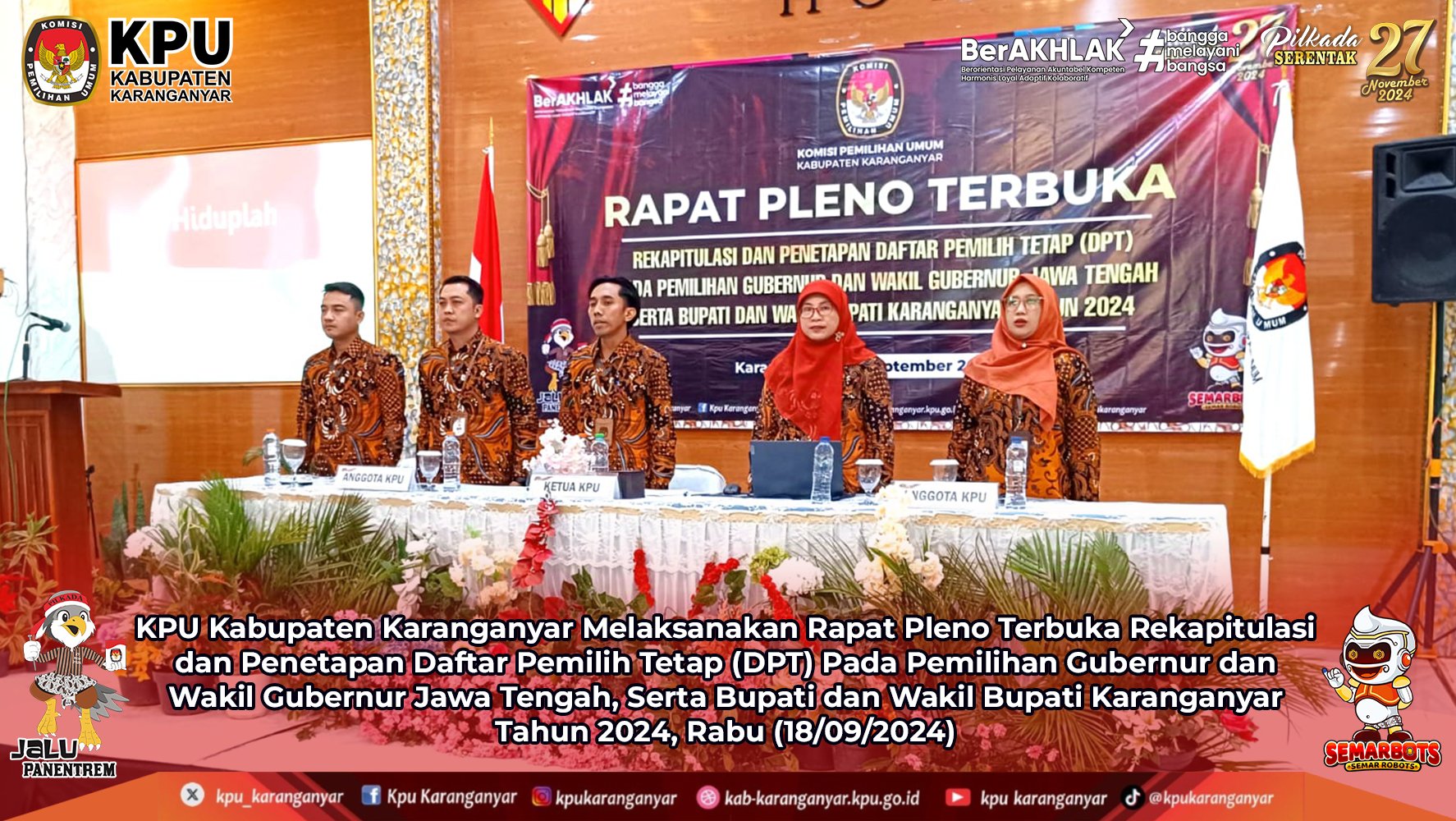 KPU Kabupaten Karanganyar Melaksanakan Rapat Pleno Terbuka Rekapitulasi dan Penetapan Daftar Pemilih Tetap (DPT) Pada Pemilihan Gubernur dan Wakil Gubernur Jawa Tengah, Serta Bupati dan Wakil Bupati Karanganyar Tahun 2024, Rabu (18/09/2024)