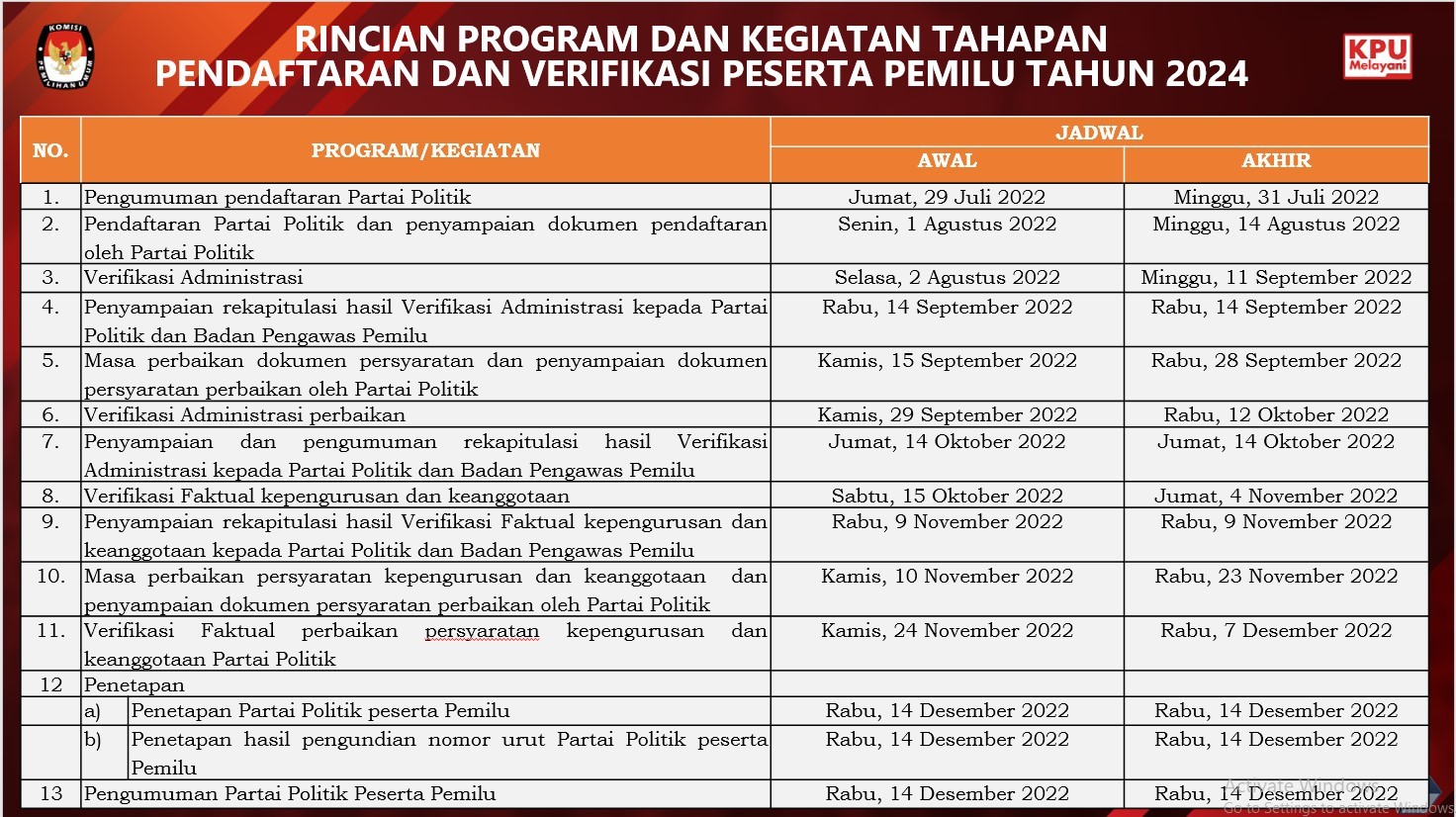 TAHAPAN PENDAFTARAN DAN VERIFIKASI PARTAI POLITIK