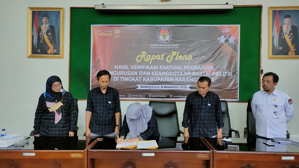 Rapat Pleno Hasil Verifikasi Faktual Perbaikan Parpol Calon Peserta Pemilu 2024 Tingkat Kabupaten Karanganyar