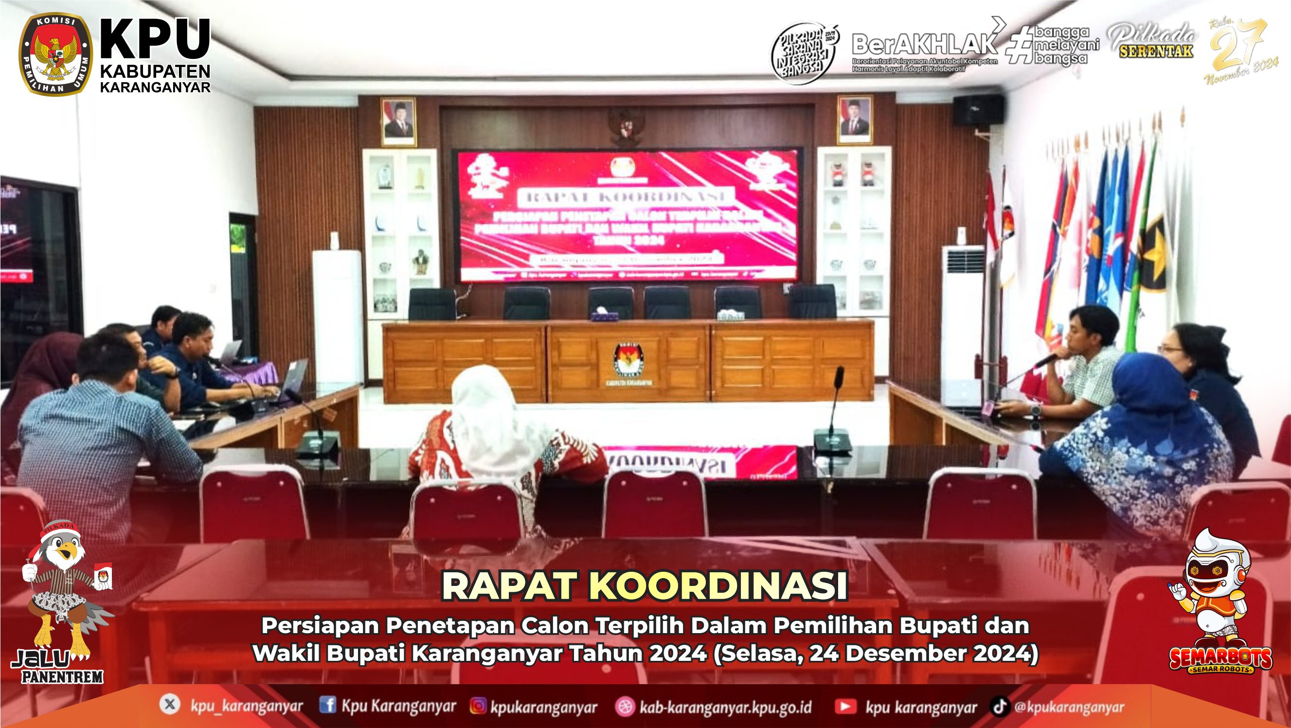 KPU Kabupaten Karanganyar Melaksanakan Rapat Koordinasi Persiapan Penetapan Calon Terpilih Dalam Pemilihan Bupati dan Wakil Bupati Karanganyar Tahun 2024 (Selasa, 24 Desember 2024)