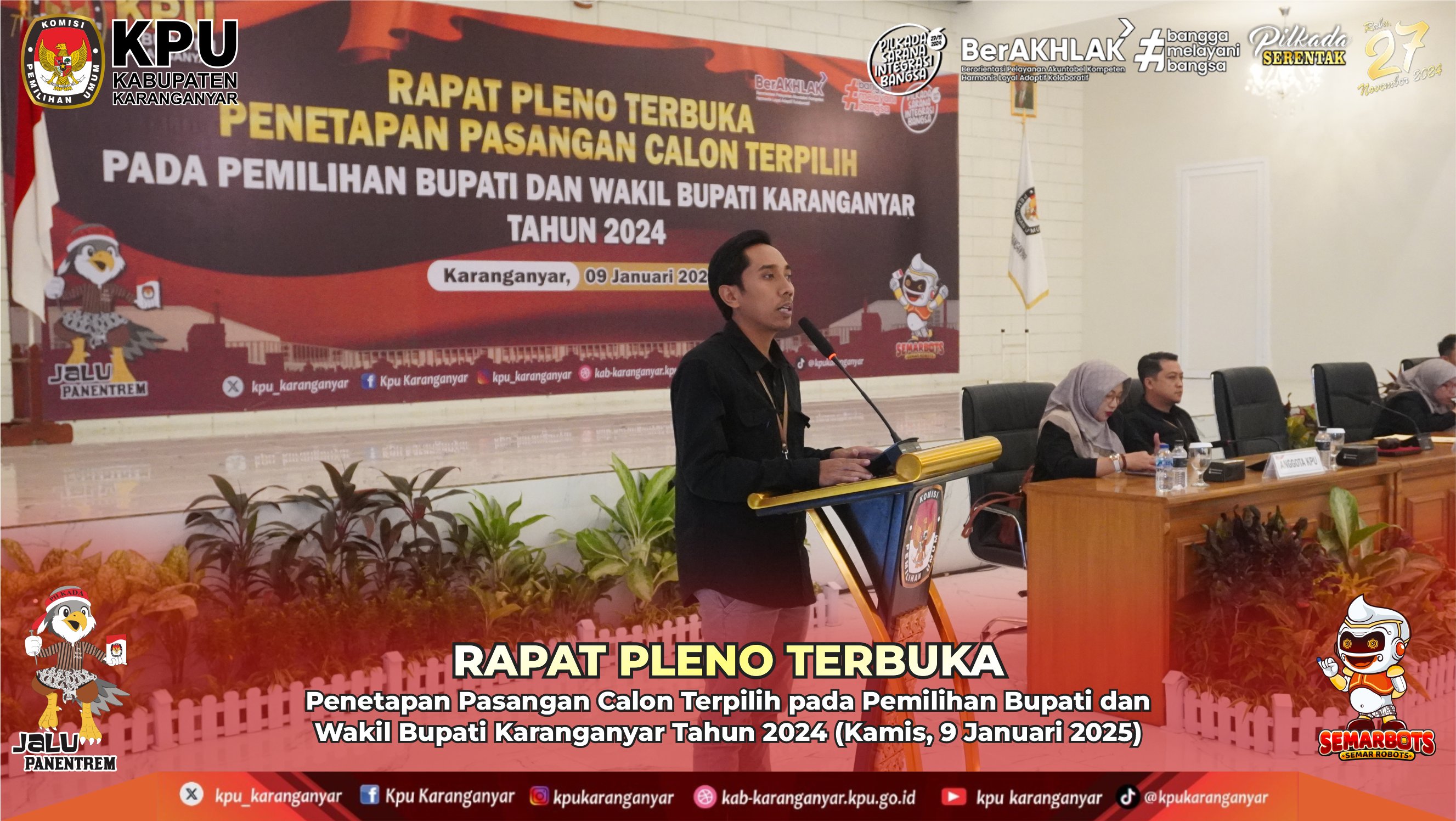 KPU Kabupaten Karanganyar Melaksanakan Rapat Pleno Terbuka Penetapan Pasangan Calon Terpilih pada Pemilihan Bupati dan Wakil Bupati Karanganyar Tahun 2024 (Kamis, 9 Januari 2025)