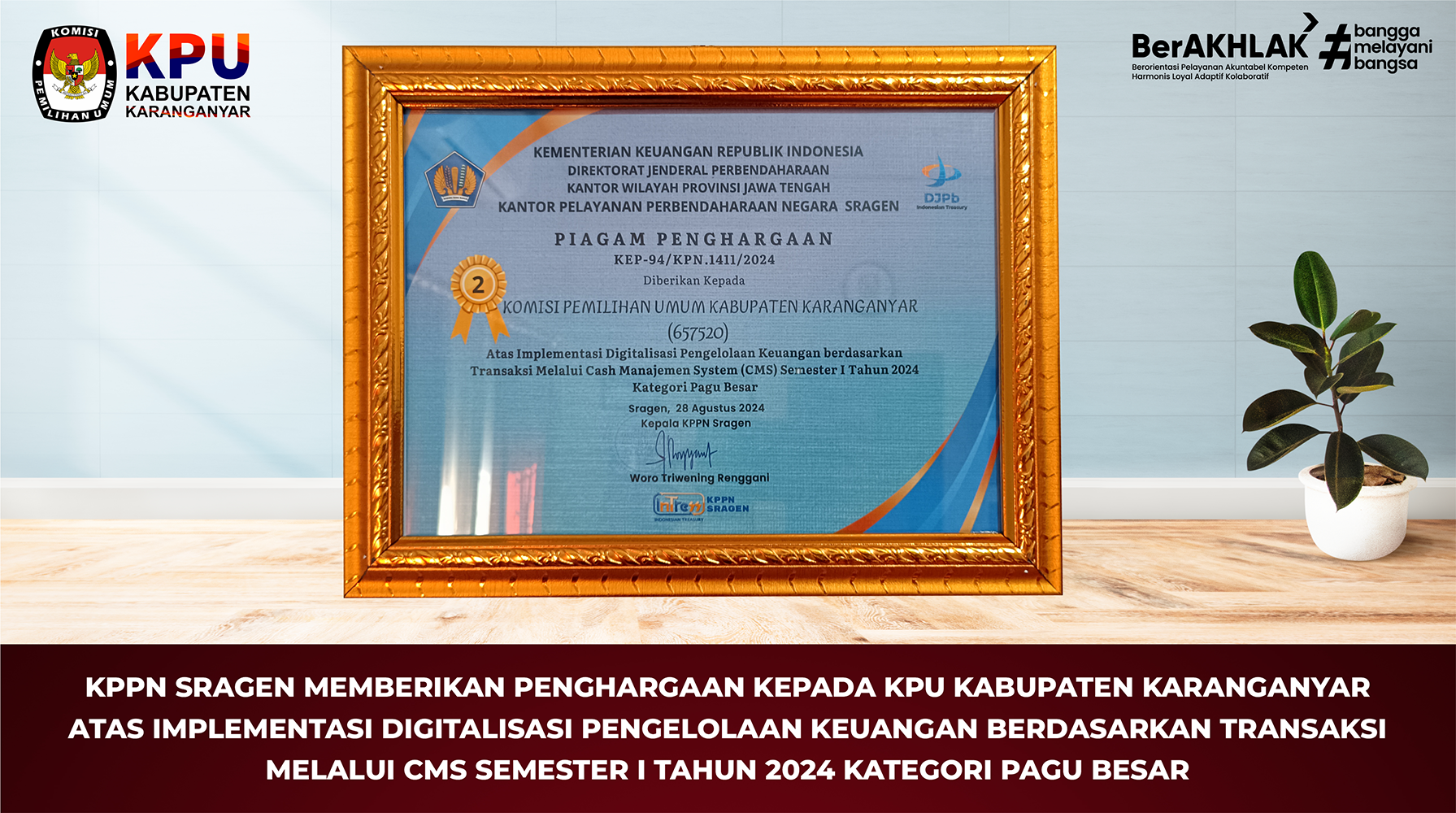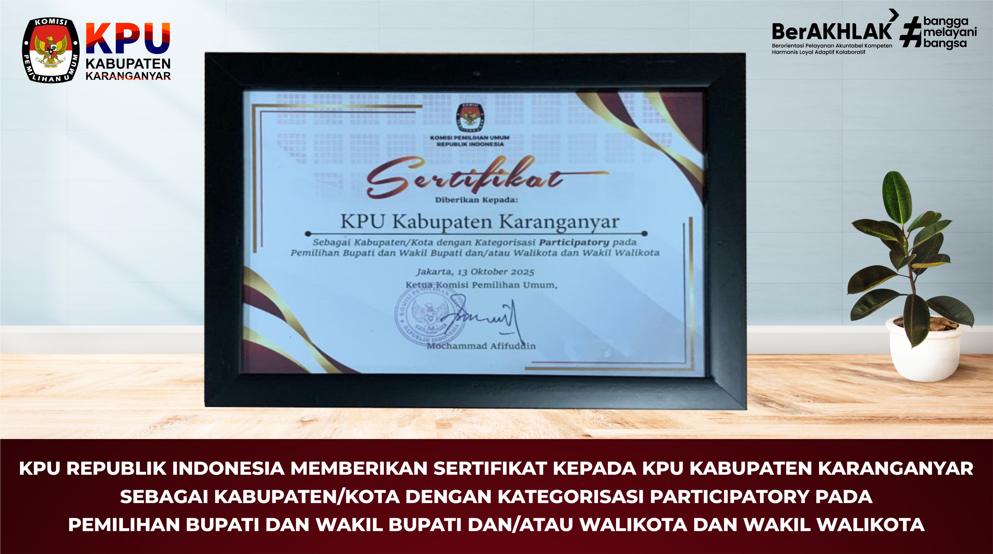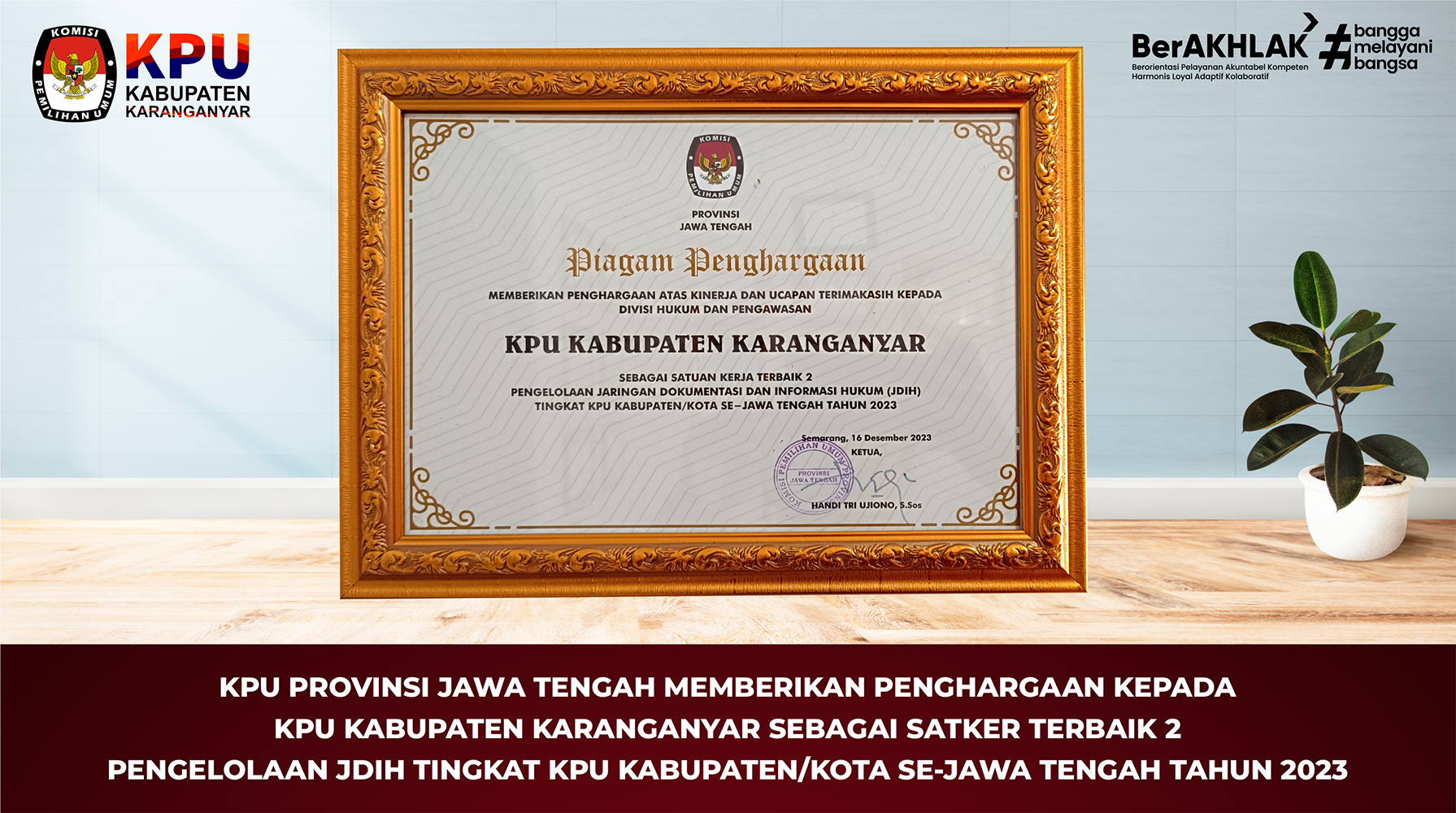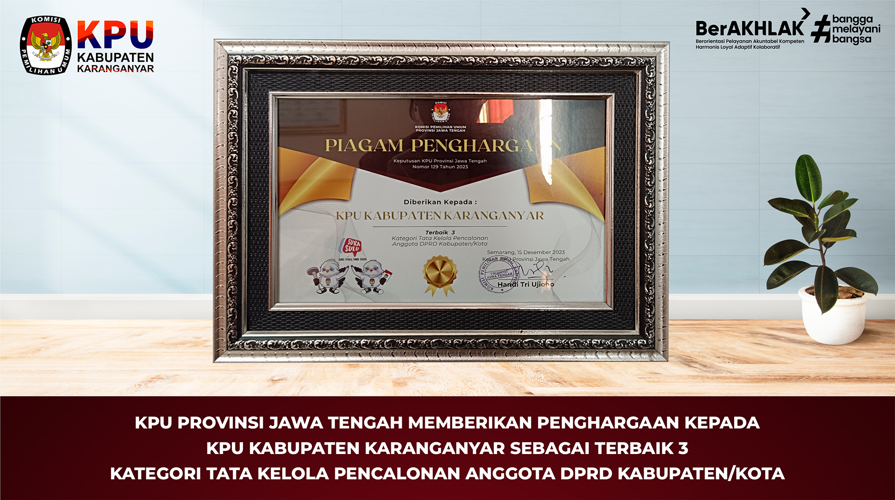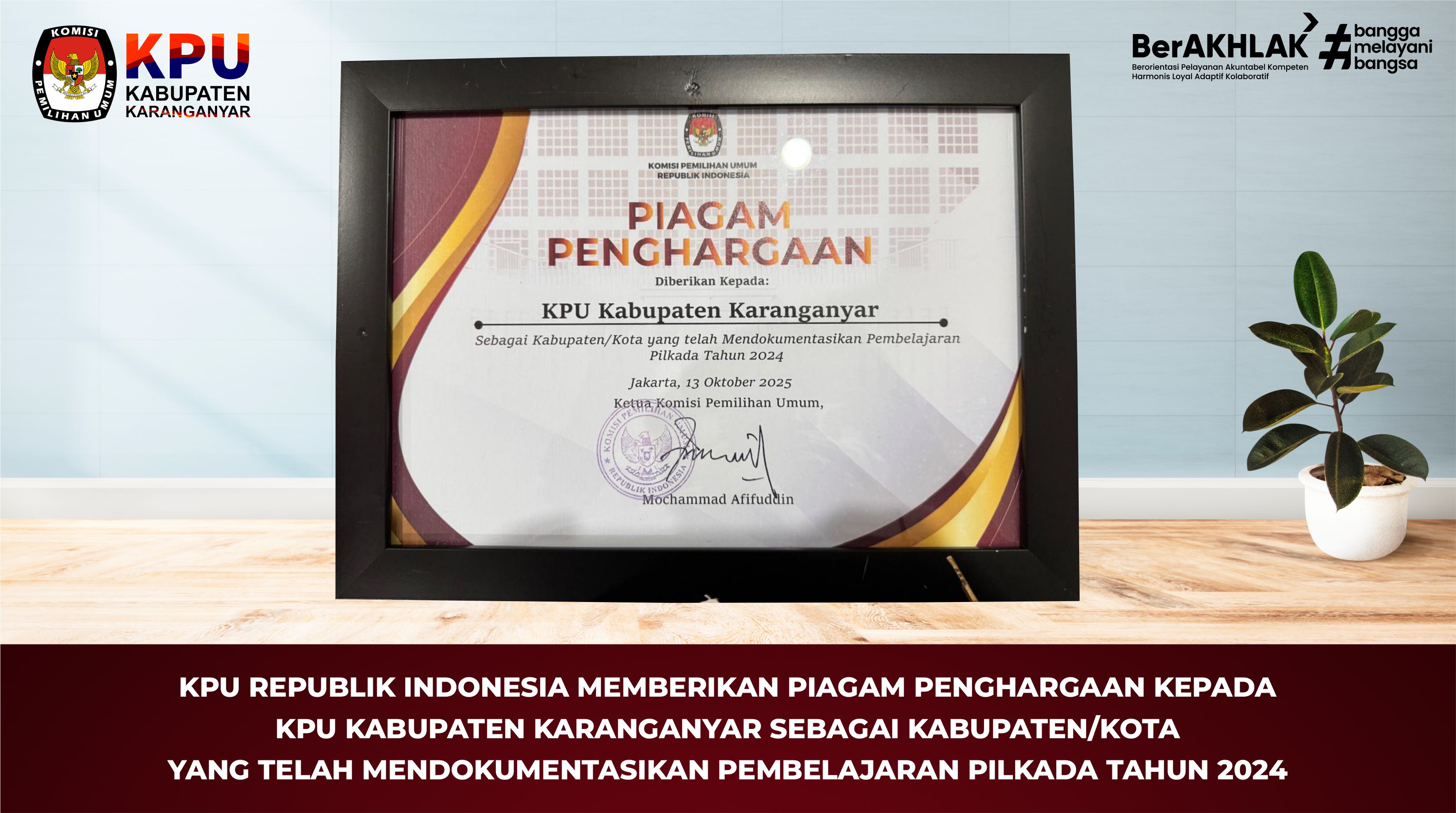 PIAGAM PENGHARGAAN KPU KABUPATEN KARANGANYAR