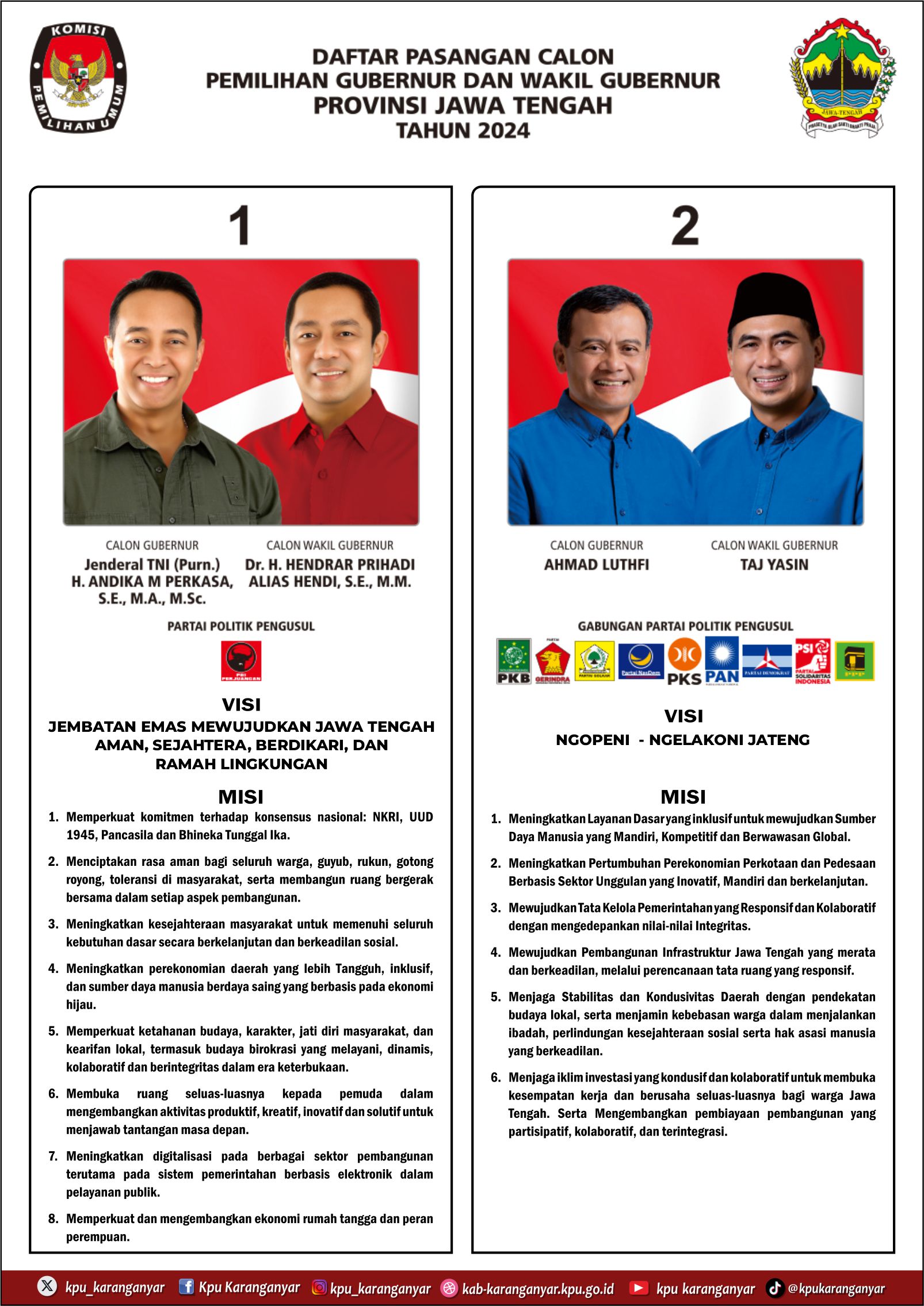 3. Daftar Pasangan Calon Gubernur dan Wakil Gubernur Jawa Tengah Tahun 2024 Beserta Visi dan Misi