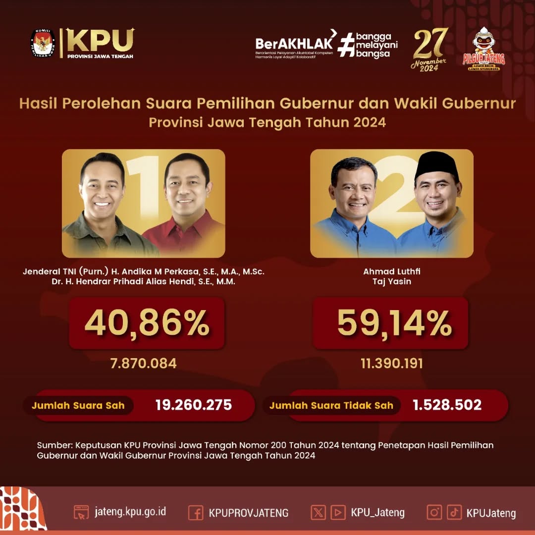 Hasil Perolehan Suara Pilgub Jateng 2024