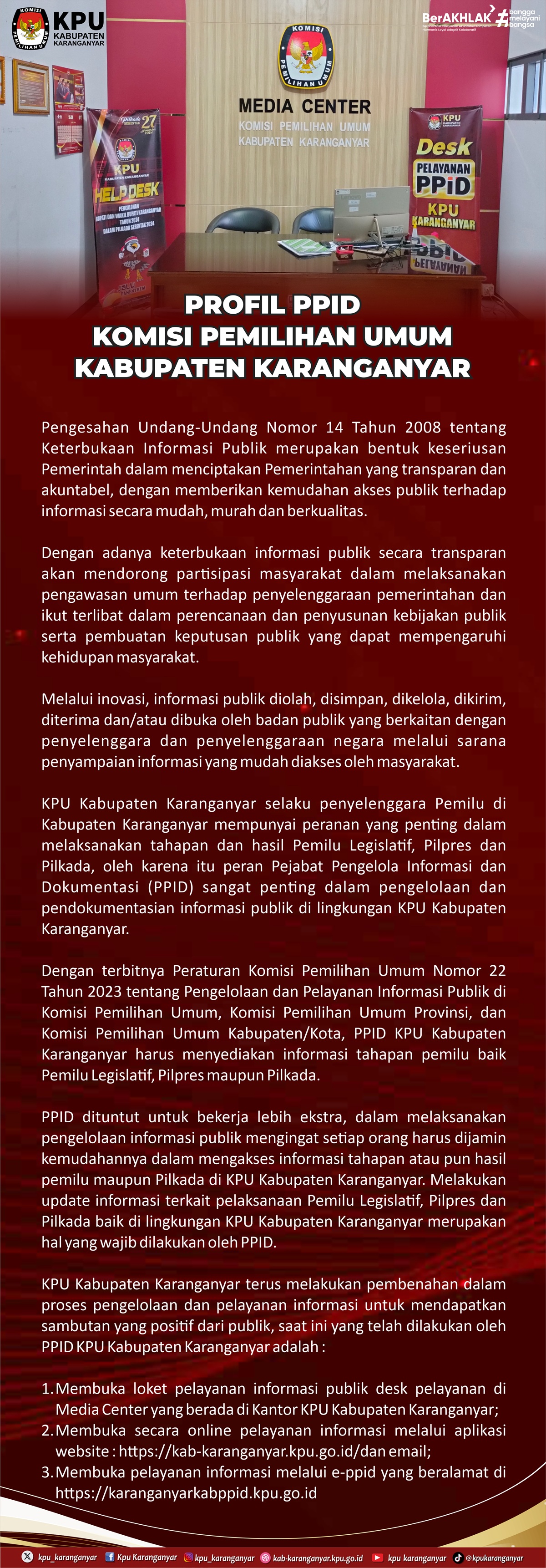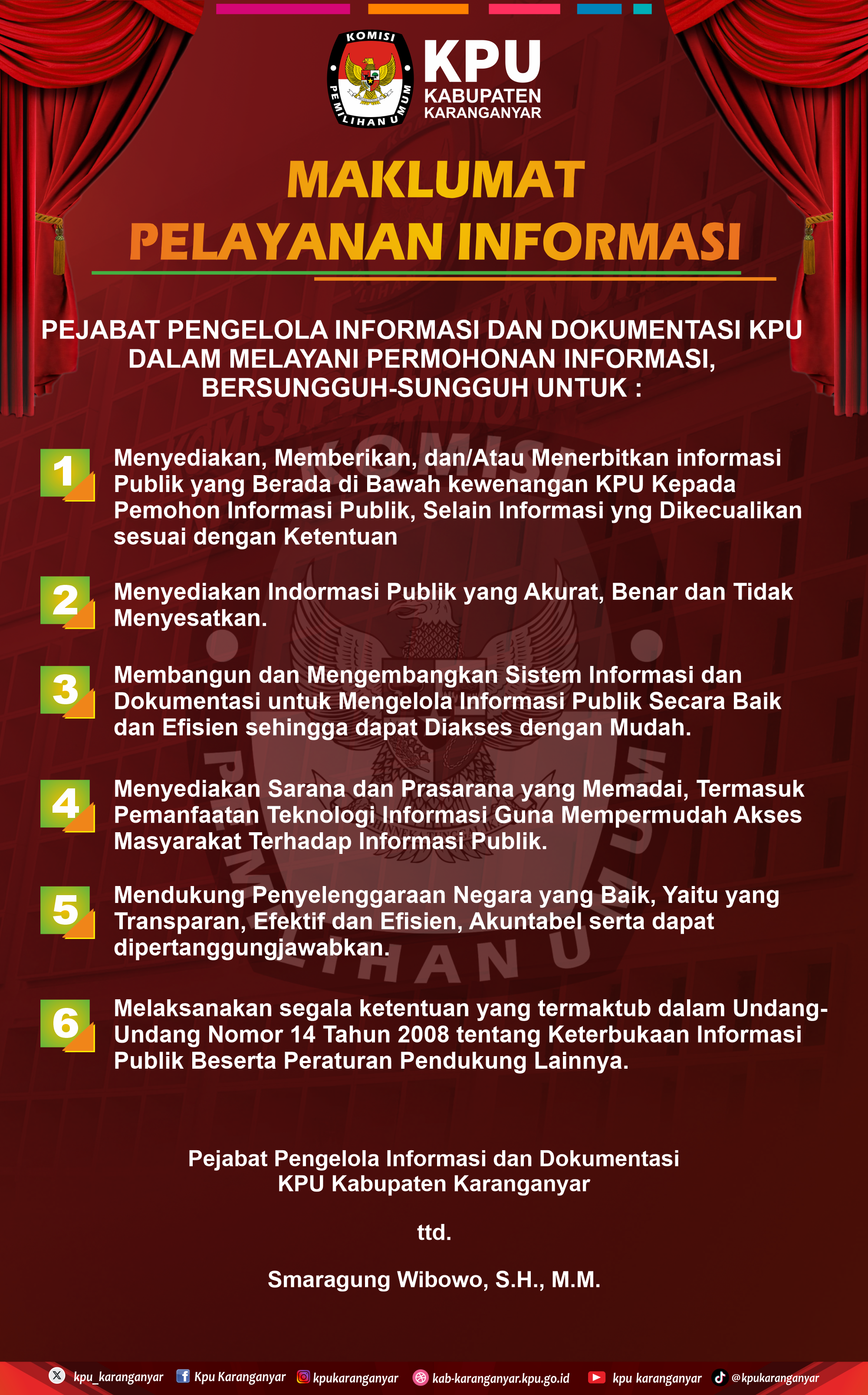 Maklumat Pelayanan Informasi Publik di Media Center KPU Kabupaten Karanganyar