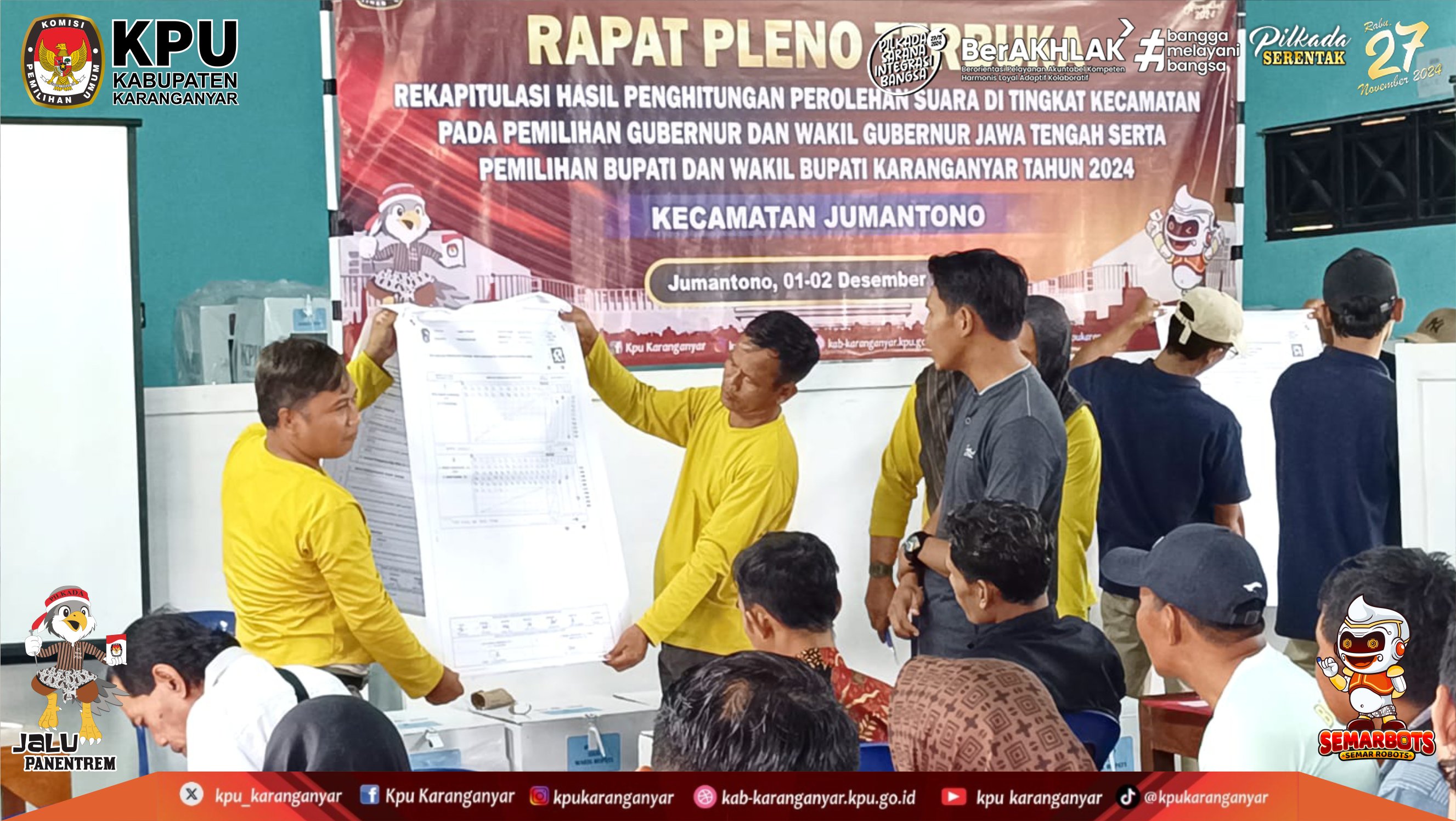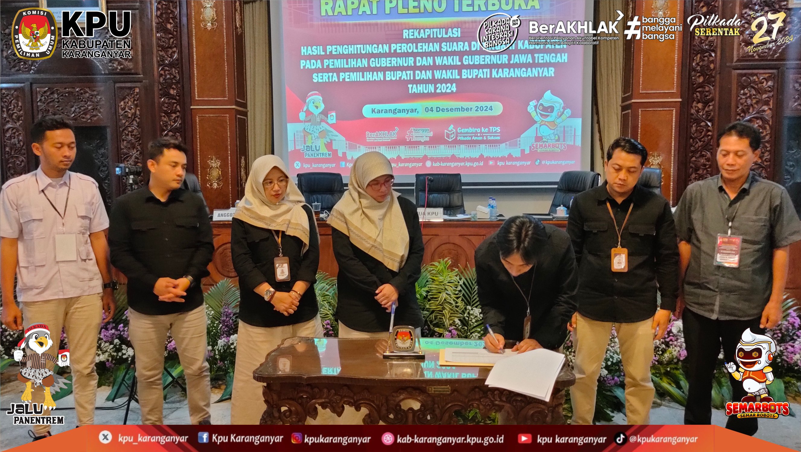 KPU Kabupaten Karanganyar Melaksanakan Rapat Pleno Terbuka Rekapitulasi Hasil Penghitungan Perolehan Suara Tingkat Kabupaten Pada Pemilihan Serentak Tahun 2024 (Rabu, 4 Desember 2024)