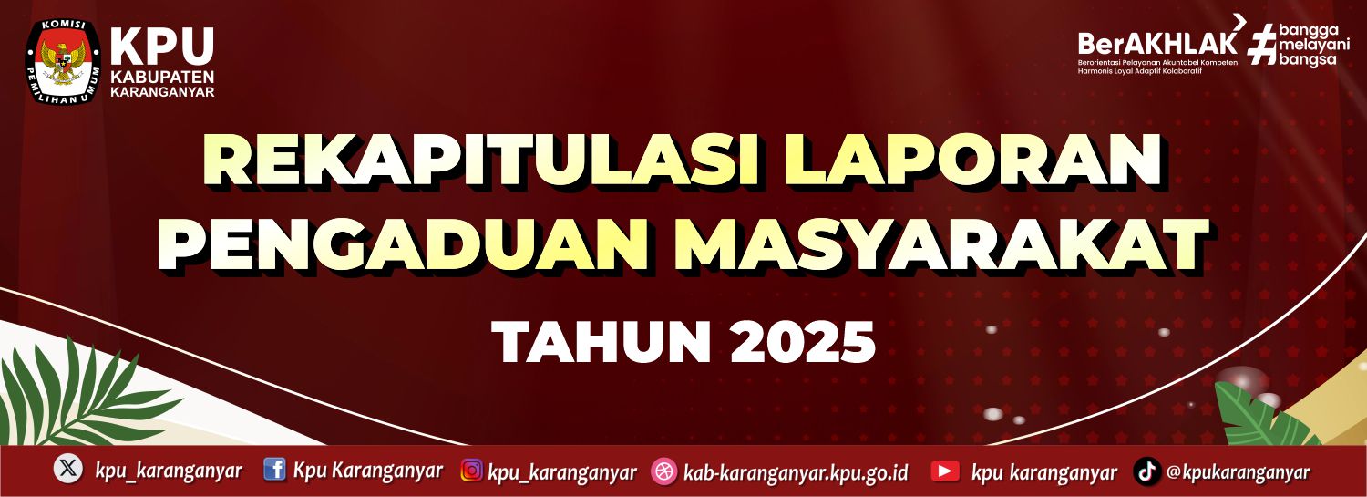 Berikut rekapitulasi laporan pengaduan masyarakat di KPU Kabupaten Karanganyar 2025 : DOWNLOAD