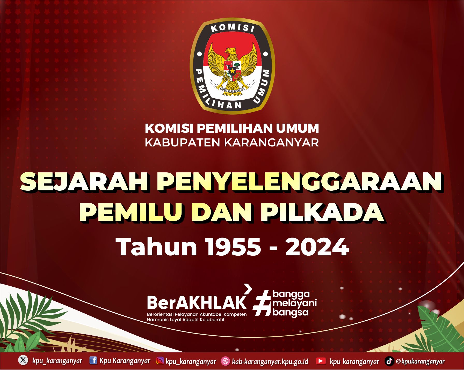 Berikut sejarah penyelenggaraan Pemilu dan Pilkada sejak tahun 1955 s/d 2024, untuk lebih detail dapat membuka link di bawah ini :