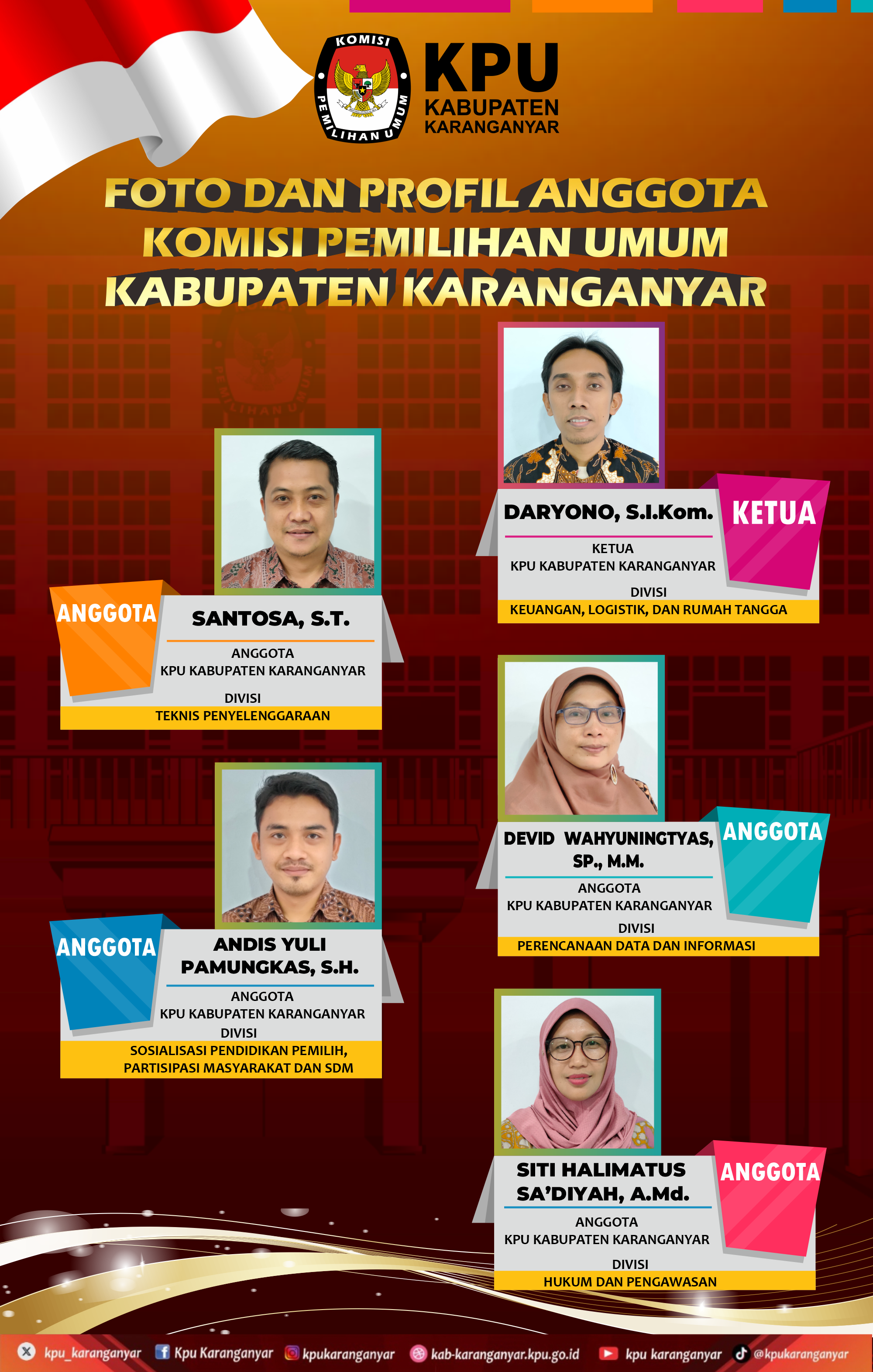 Foto dan Profil Anggota KPU Kabupaten Karanganyar sebagai berikut :